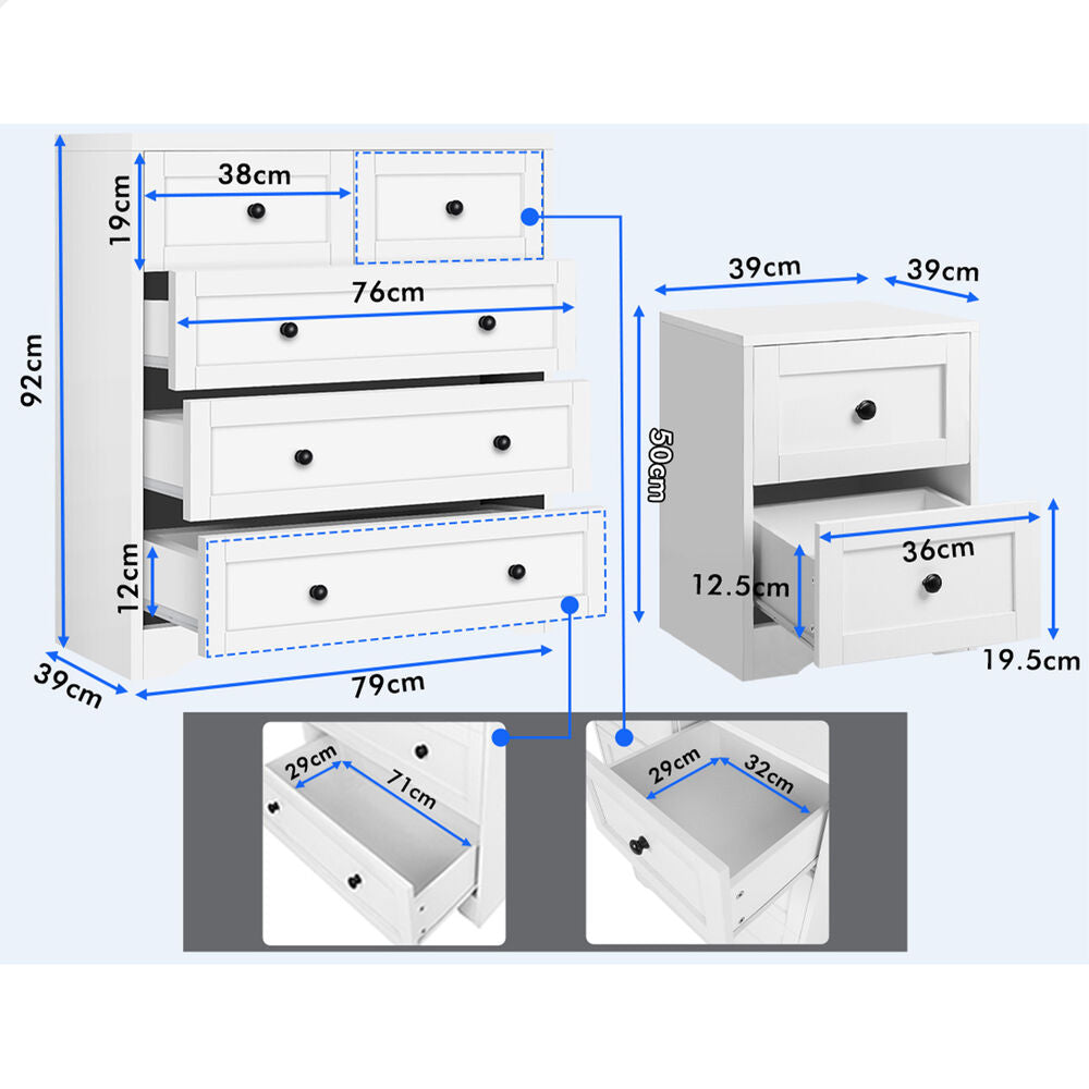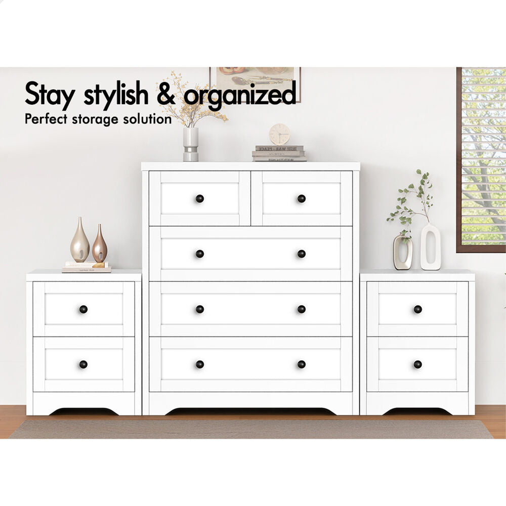 ALFORDSON 5 Chest of Drawers 2x Bedside Table Hamptons Bedroom Storage White