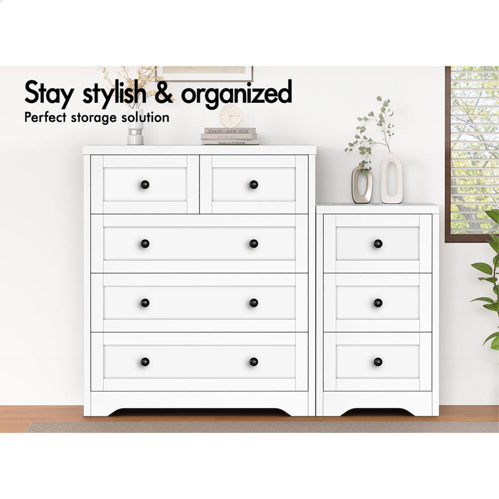 - 5 Chest of Drawers & 3-Drawer Bedside Table