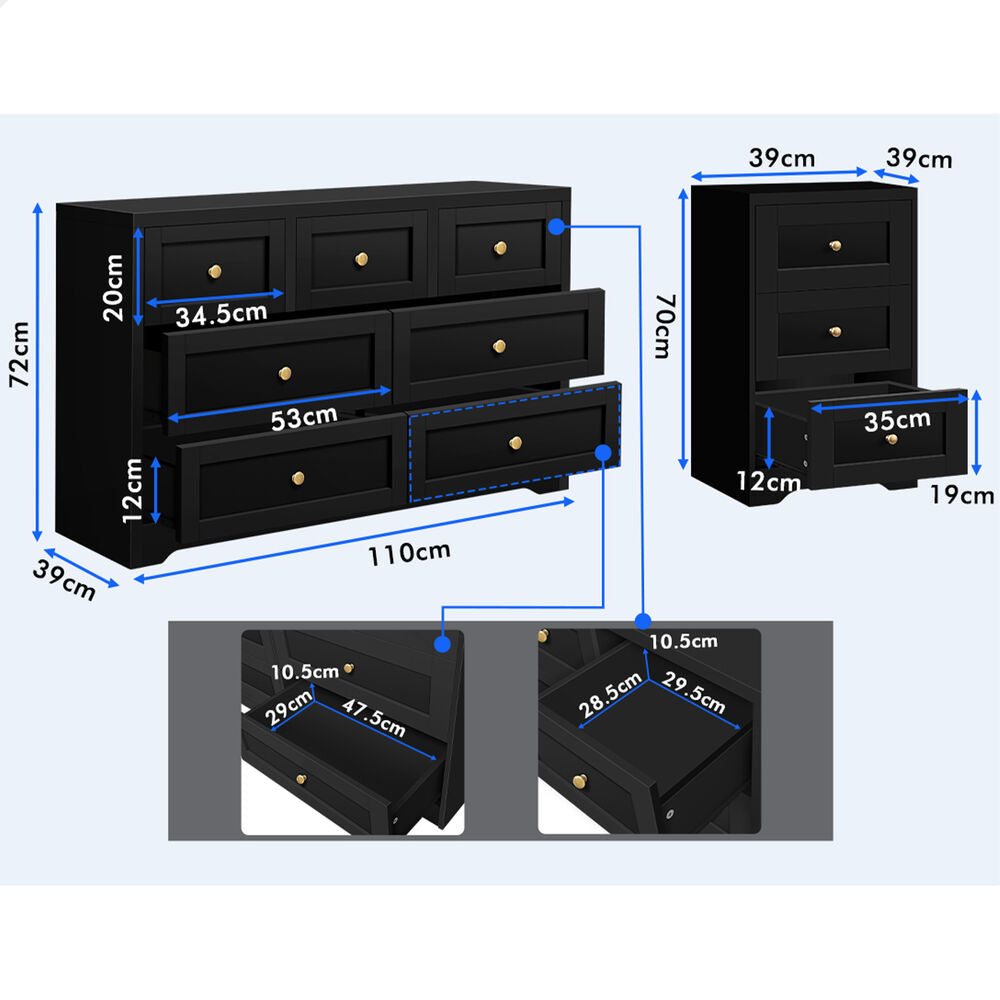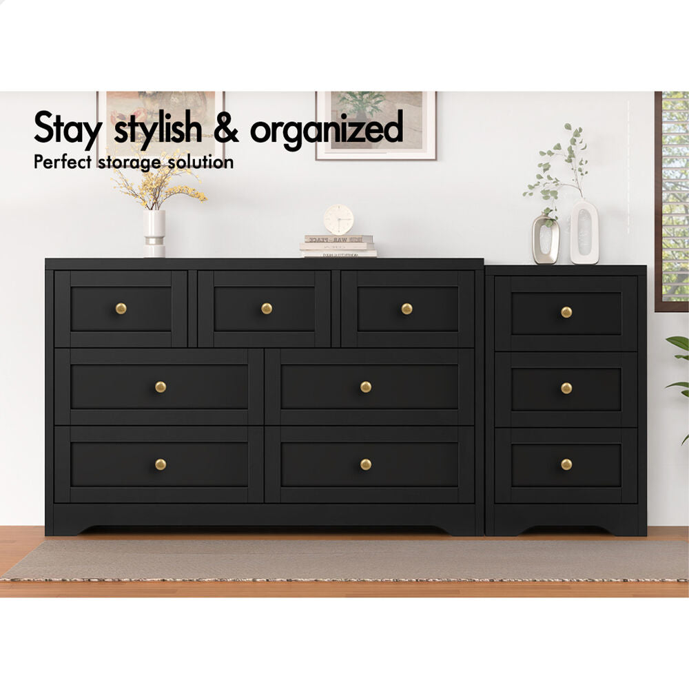 ALFORDSON 7 Chest of Drawers Bedside Table Bedroom Storage Hamptons Black