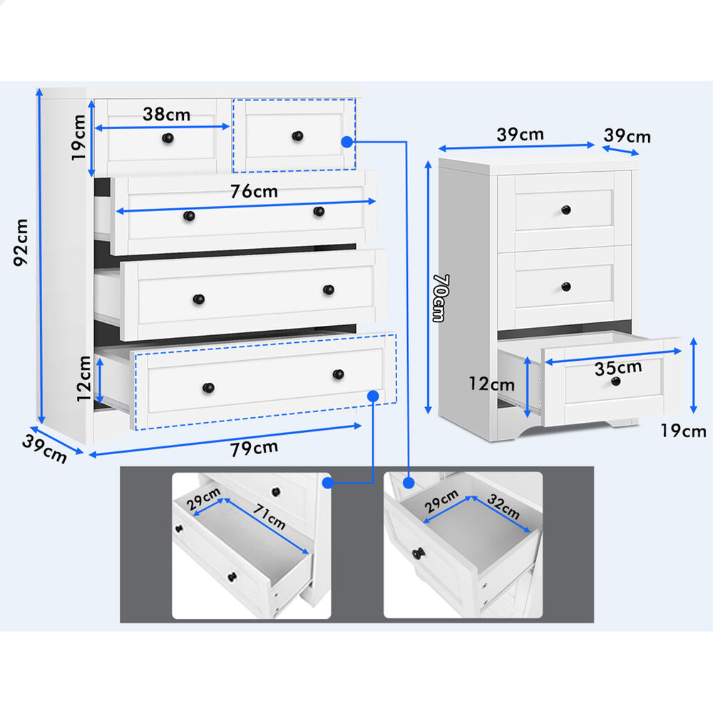 ALFORDSON 5 Chest of Drawers 2x Bedside Table Bedroom Storage Hamptons White