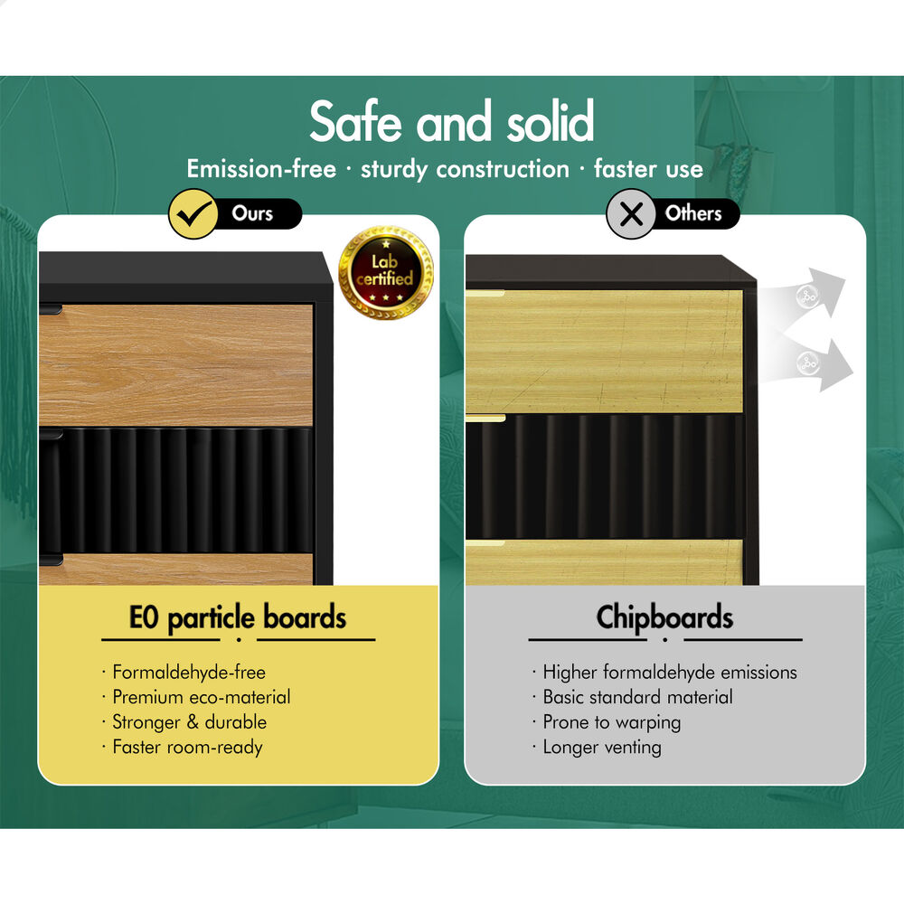 Focus on quality - Made of superior E1 grade 15mm thick particle board, this bedroom storage cabinet set is designed to be highly secure. To add extra stability, an upgraded anti-tip kit is equipped for the linkage between the cabinet and the wall. Unlike some other sellers, we have no compromise on materials used. Instead of flimsy paper finish, our chest of drawers and bedside table are well made with melamine finish. It is not only easy to maintain, but also long lasting.