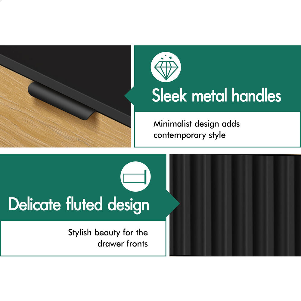 Minimalistic styling - Crafted with timeless elegance, the chest of drawers and bedside table blend two-tone colours and delicate fluted design, making it a seamless fit for any space regardless of the style of your home. Not only will this set look stylish, but it will also give you a maximum amount of space to better organize your surroundings.