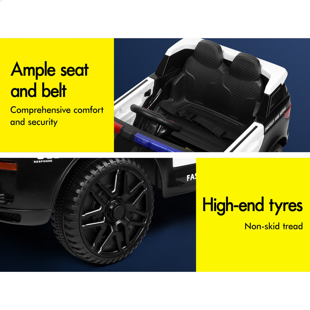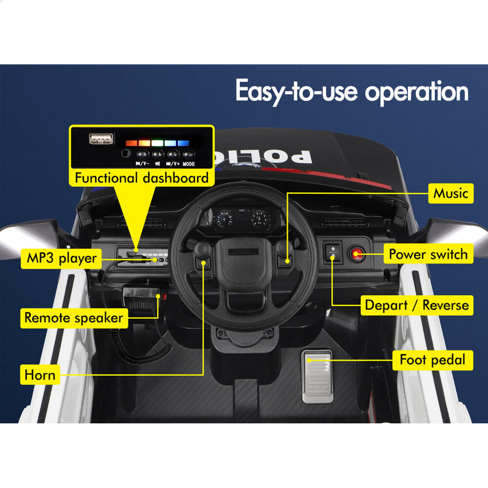 Your child will love the realistic car details, including a working steering wheel, horn, remote speaker and lights. The police car is also equipped with a secure seatbelt and easy-to-use controls, ensuring your child feels safe and in control.