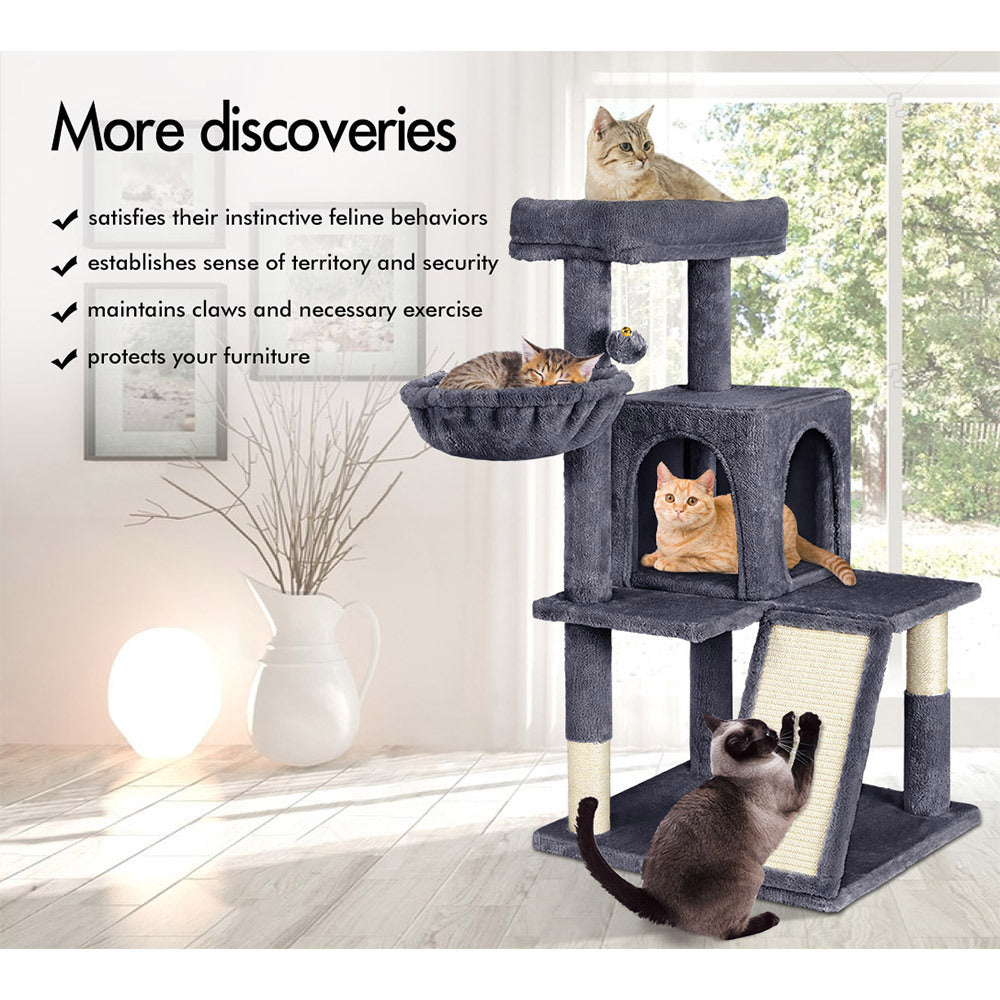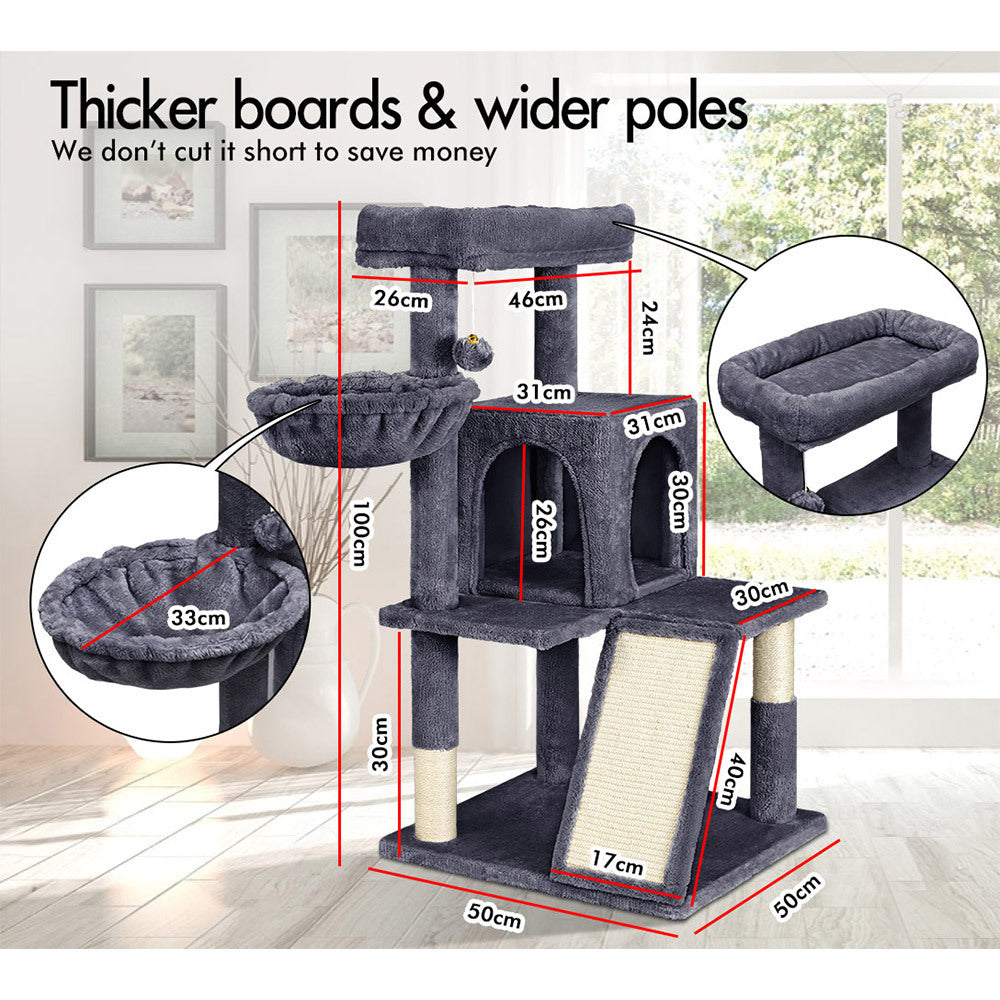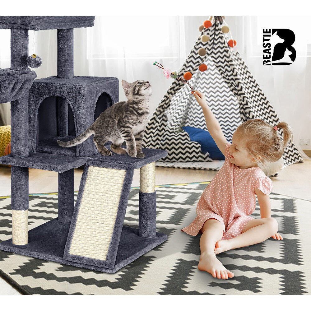 BEASTIE Cat Tree Scratching Post Scratcher Tower Condo House Furniture Wood 100cm Grey
