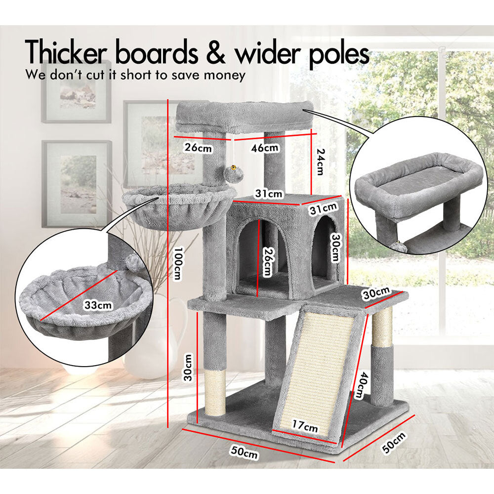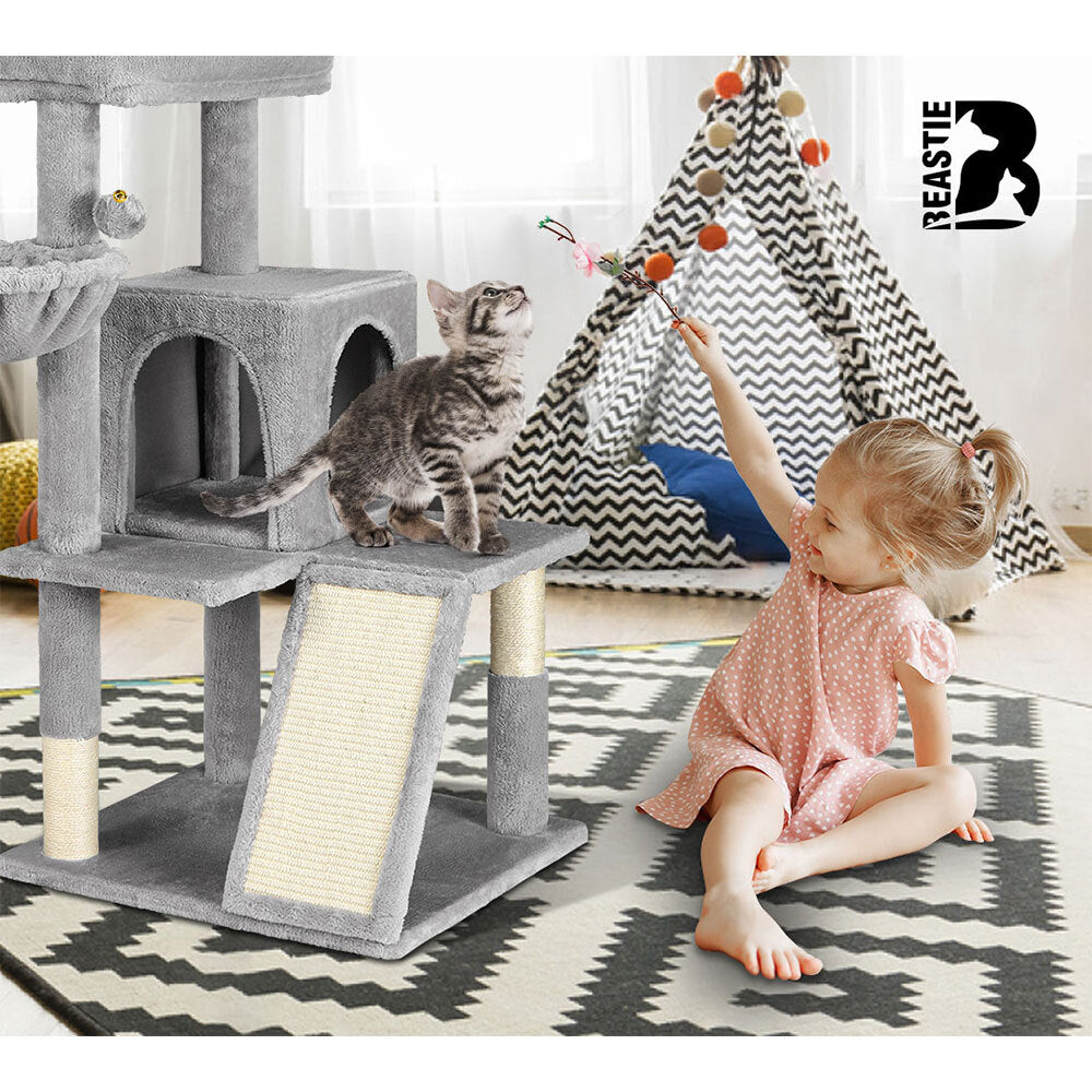 BEASTIE Cat Tree Scratching Post Scratcher Tower Condo House Furniture Wood 100cm Grey