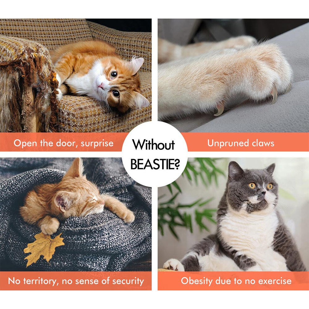 Without BEASTIE cat tree, you would wait for open-the-door surprise everyday on which furniture is ruined. And your kitties will have unpruned claws if they have nowhere to satisfy their instinctive feline behaviors. Worse still, it's easy to gain weight without necessary exercise, and lacking territory brings no sense of security which will build timid or irritable character to your little ones.