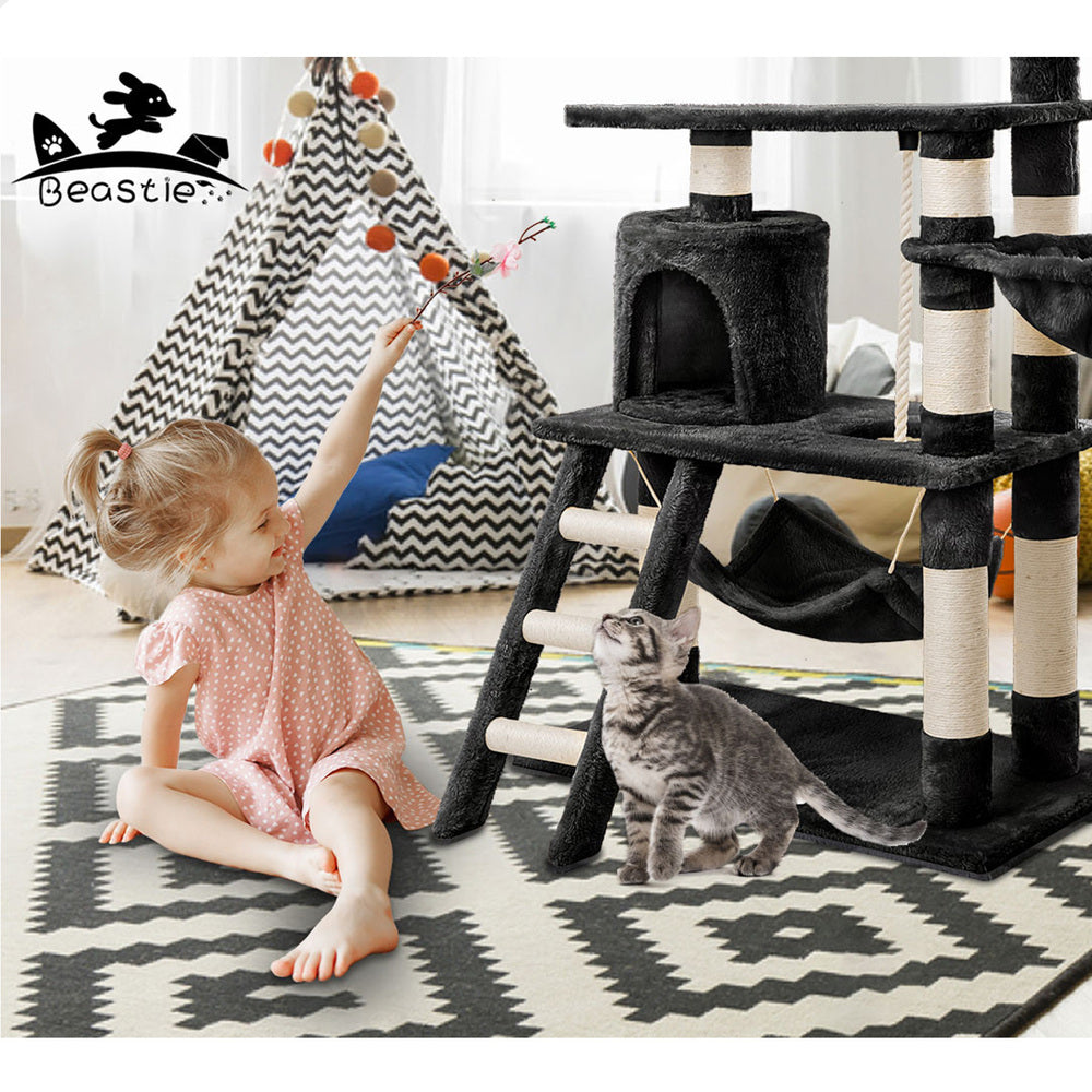 BEASTIE Cat Tree Scratching Post Scratcher Tower Condo House Furniture Wood 140