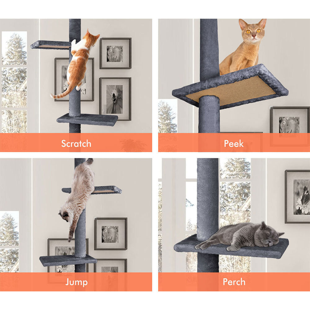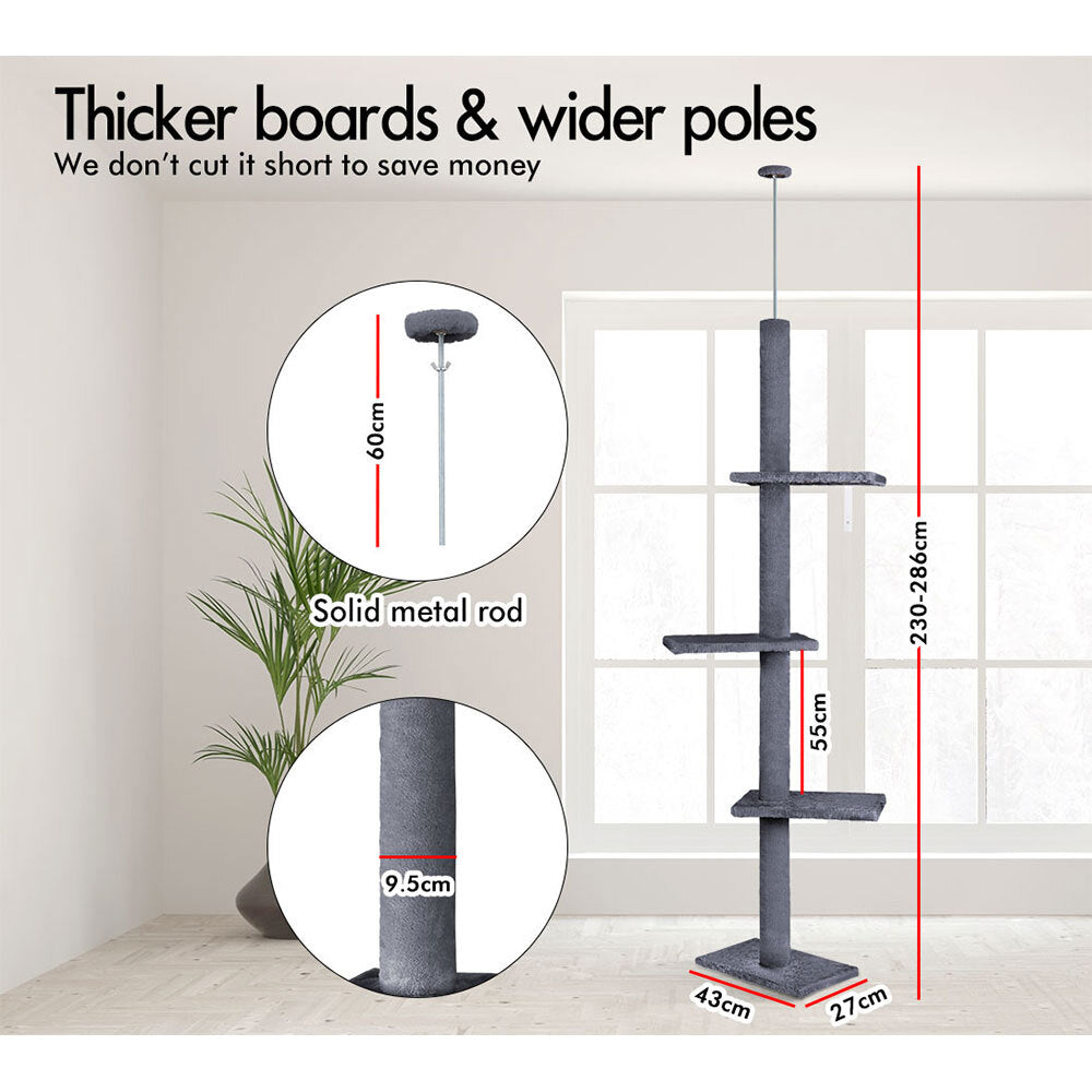 BEASTIE Cat Tree Scratching Post Scratcher Tower Condo House Grey 230-286cm