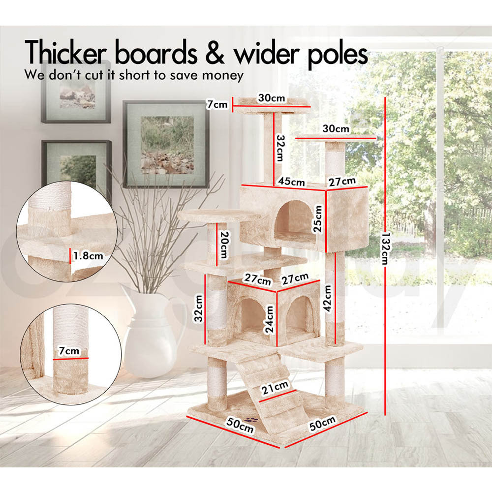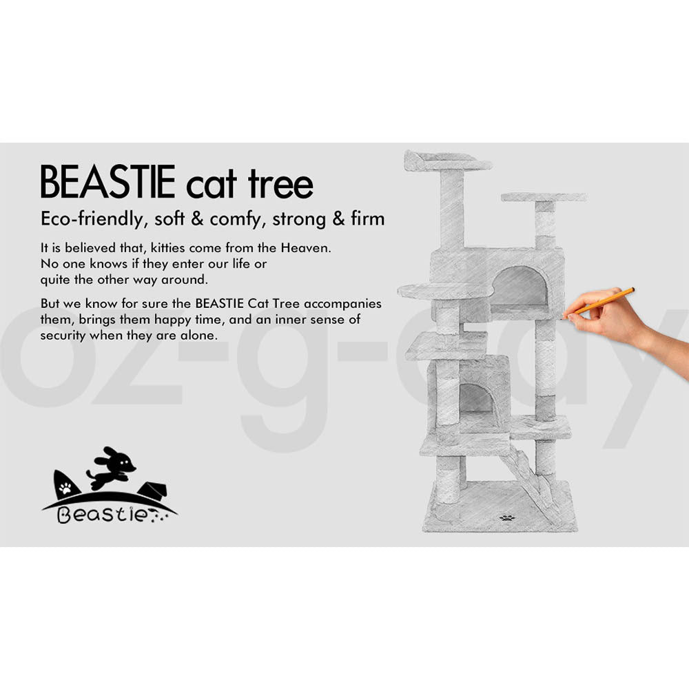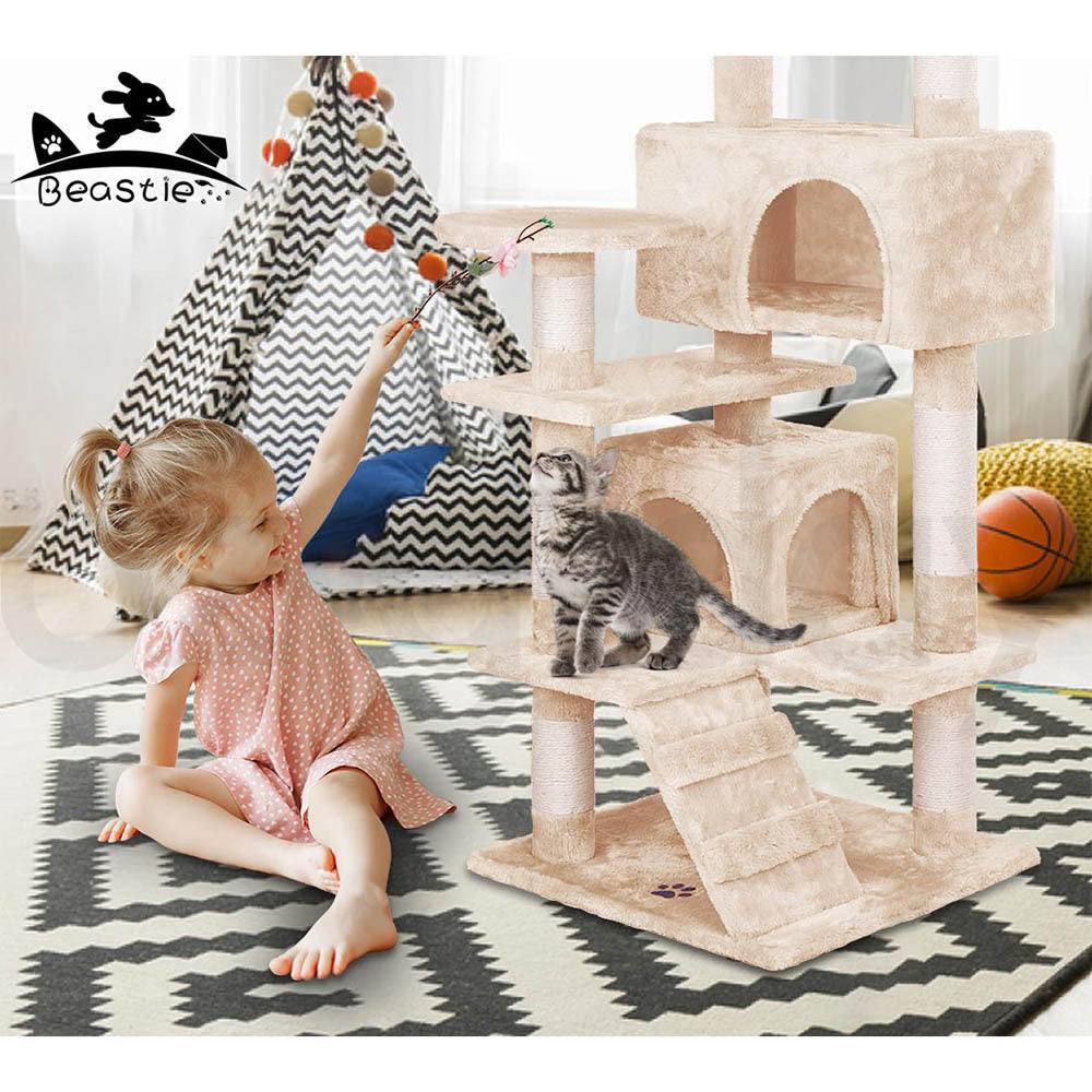 BEASTIE Cat Tree Scratching Post Scratcher Tower Condo House Furniture Wood 132
