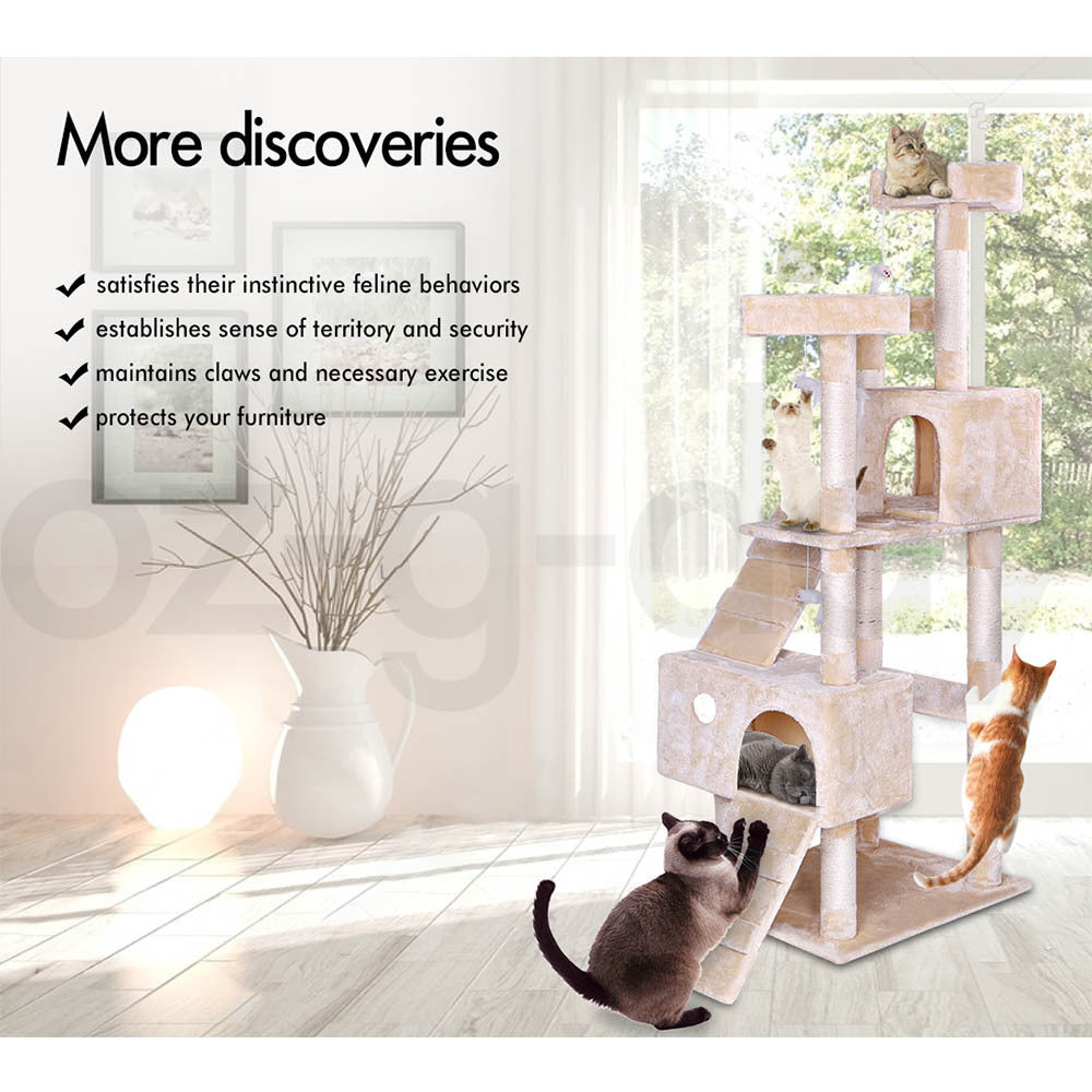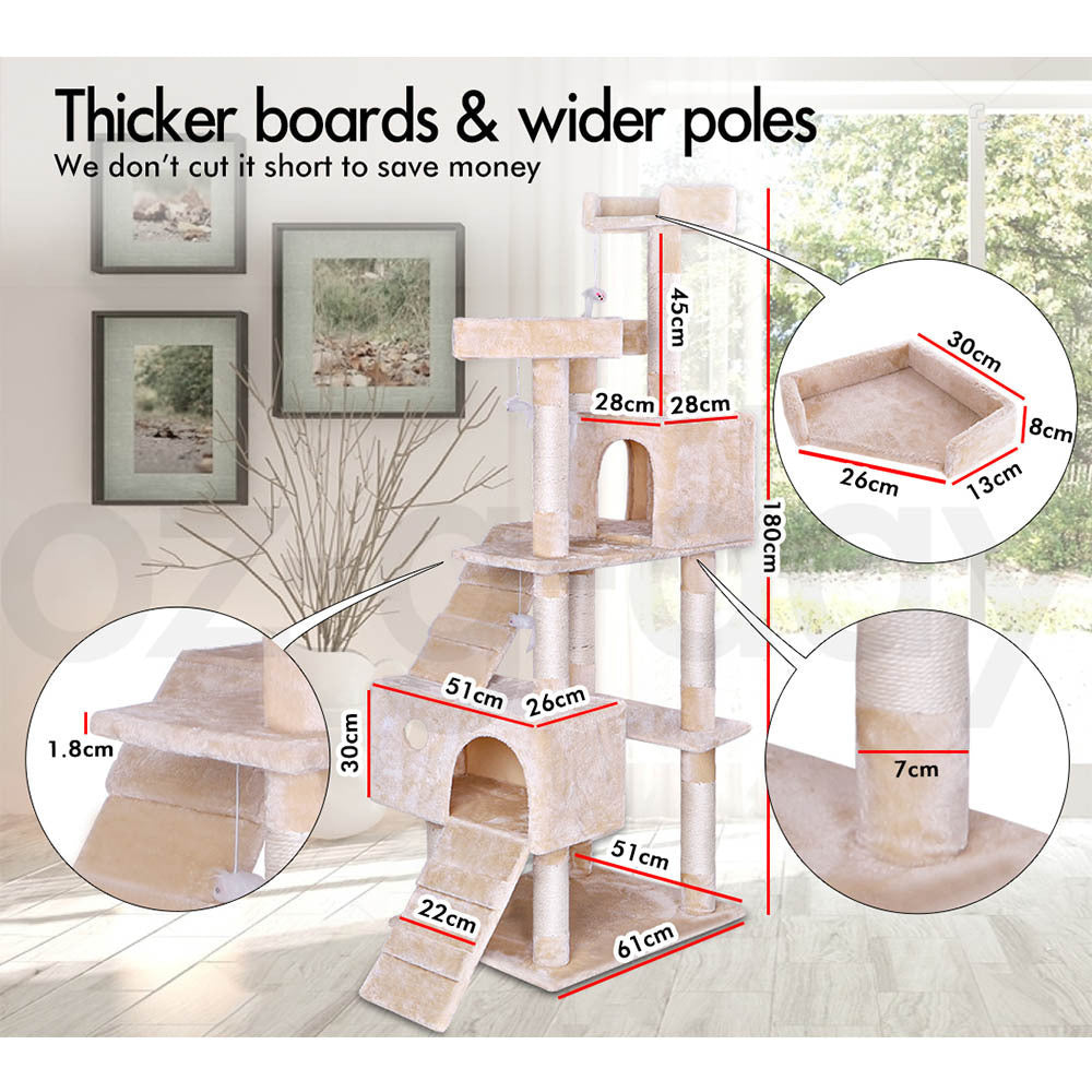 BEASTIE Cat Tree Scratching Post Scratcher Tower Condo House Furniture Wood 180