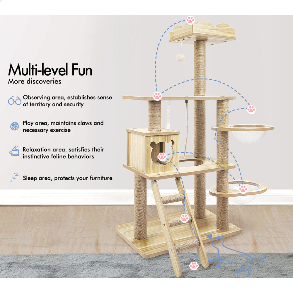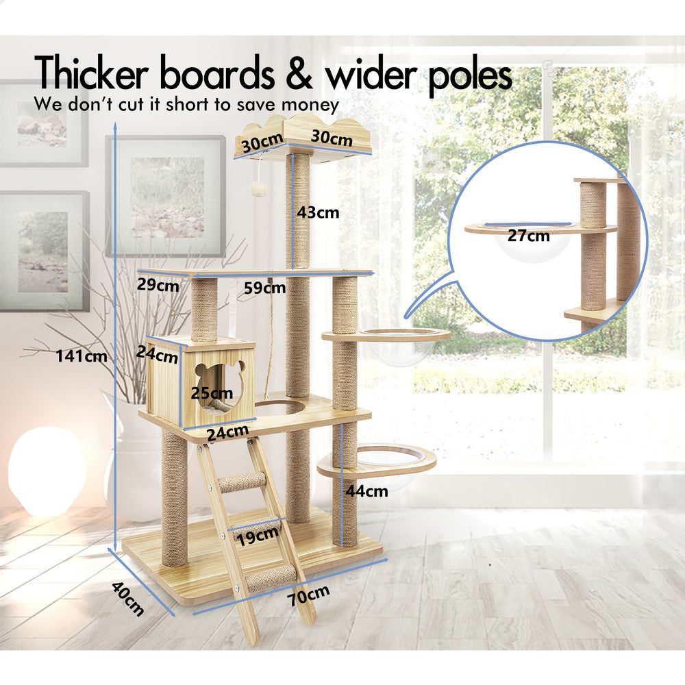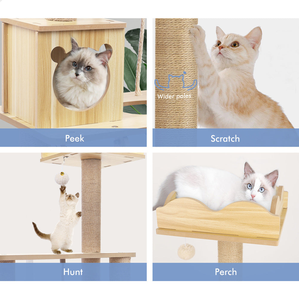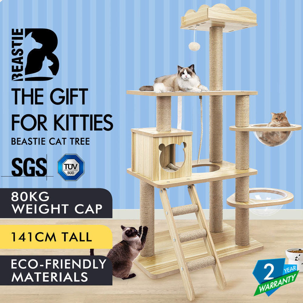 BEASTIE Cat Tree Tower Scratching Post Wood Scratcher Condo House Bed 141cm