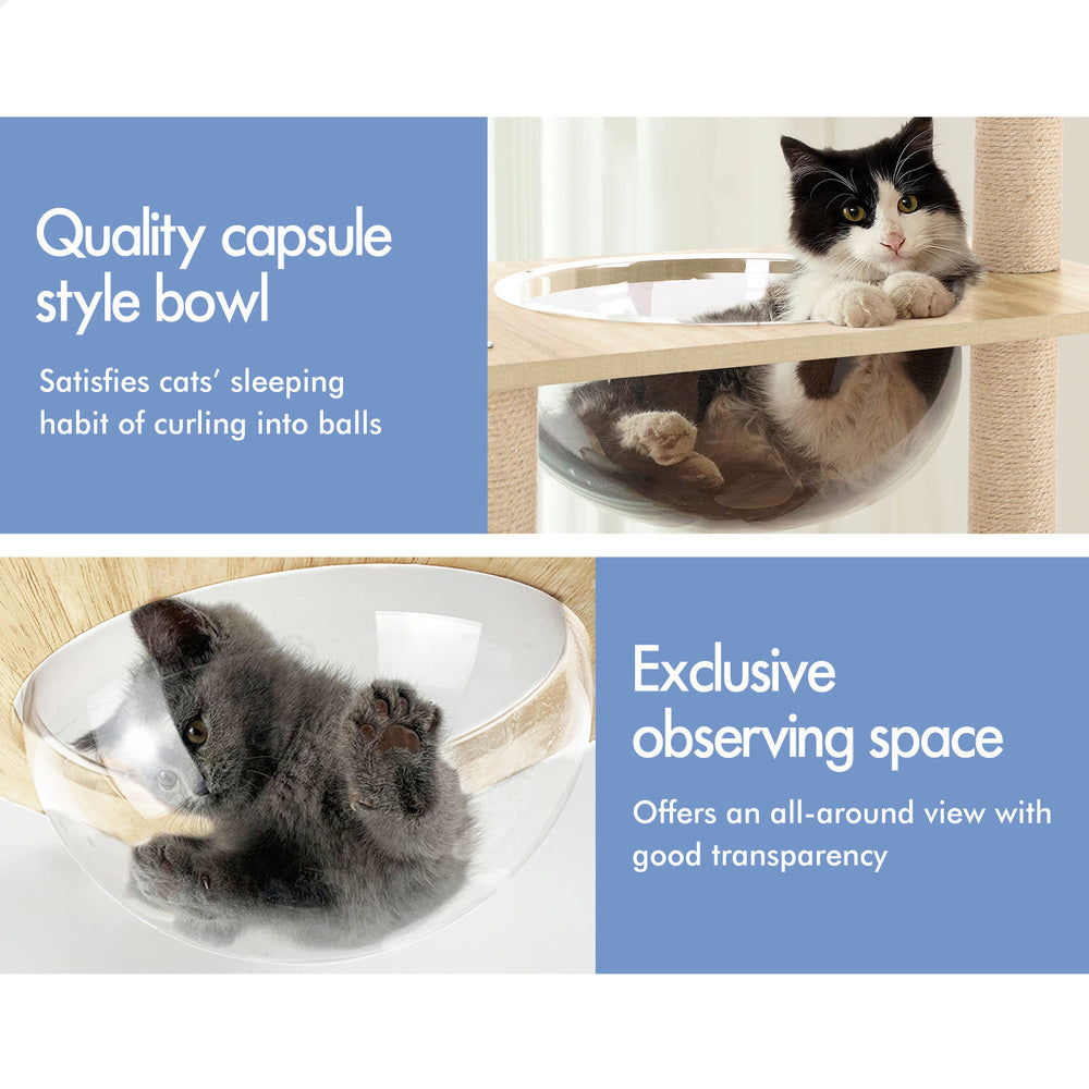 Better still, a cosy condo, a high-quality see-through bowl, large plush dens and dangly balls keep them entertained when they are alone. It also comes with sisal scratching poles for cute climbers to develop healthy nails.