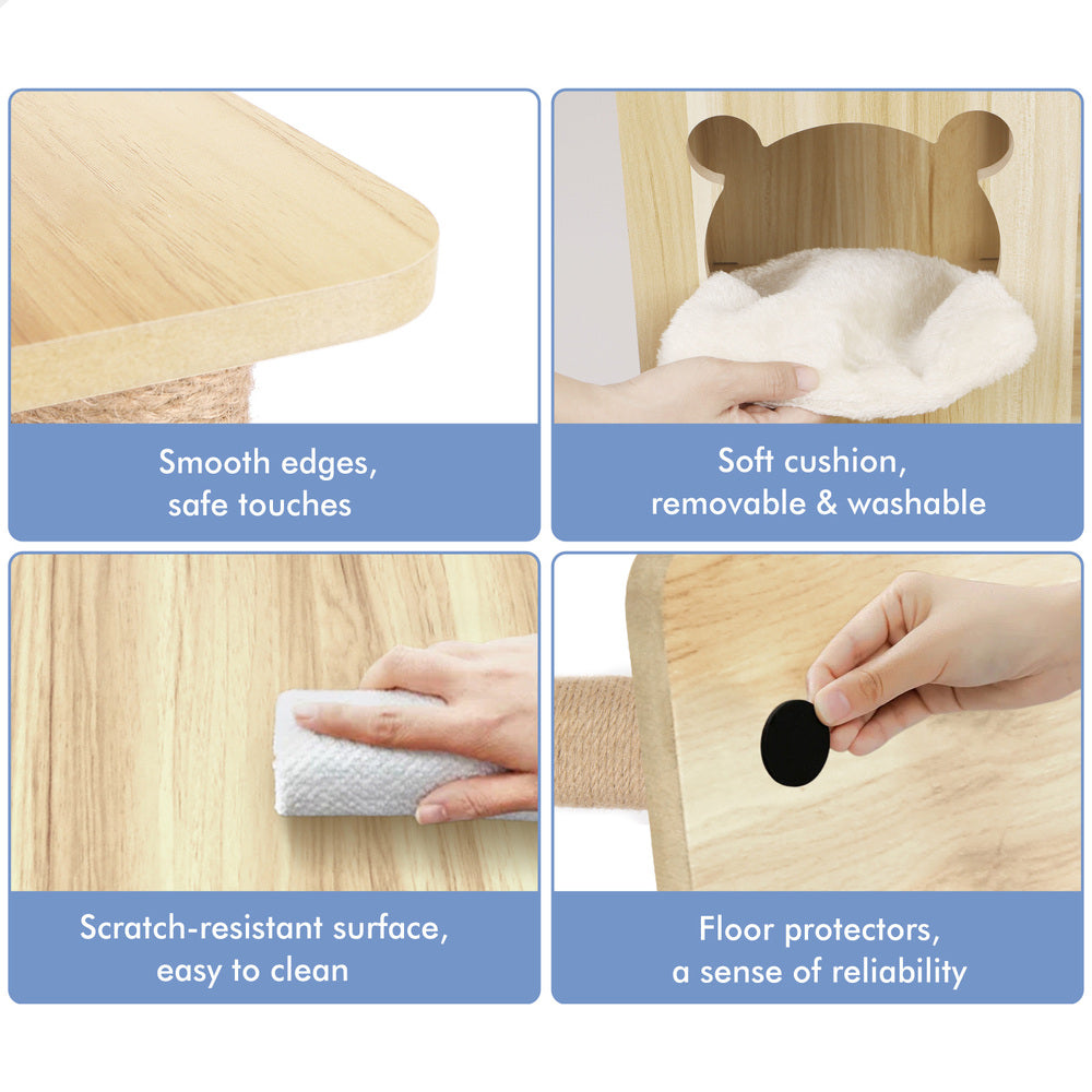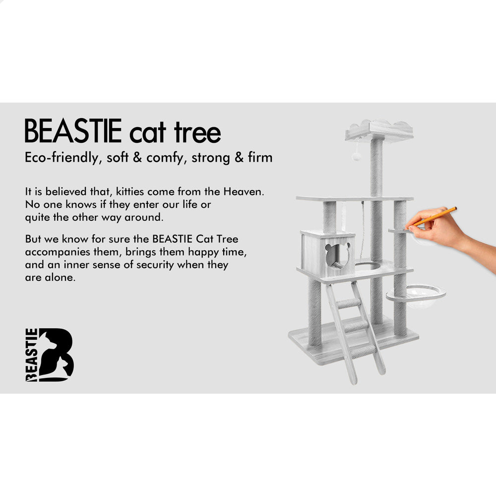 With its sleek design, the cat tree will fit seamlessly into any room and complement any decor style. Order now and give your kitties the ultimate play and relaxation experience with our BEASTIE Wooden Cat Tree!