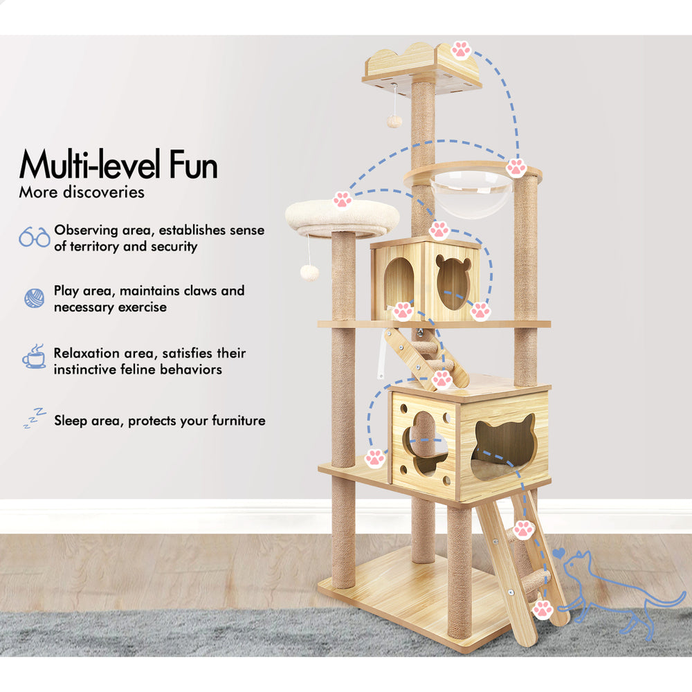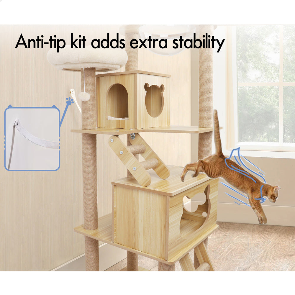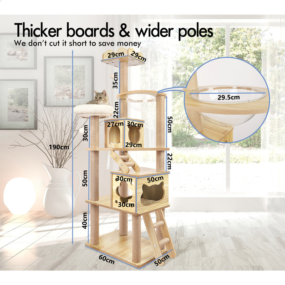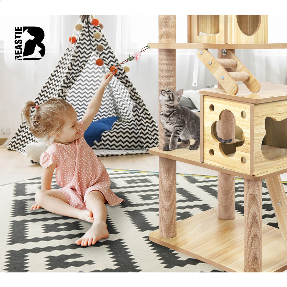BEASTIE Cat Tree Tower Scratching Post Wood Scratcher Condo House Bed 190cm