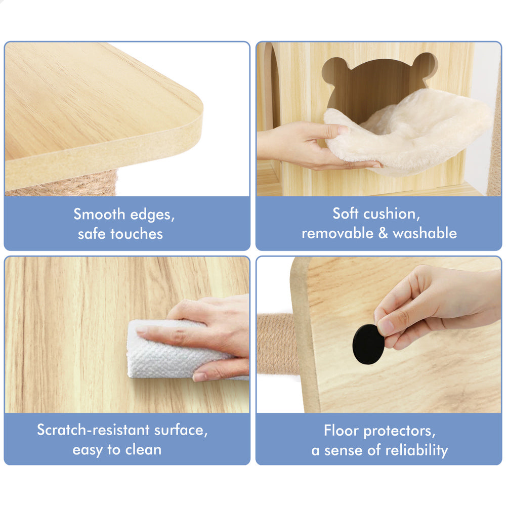 With its sleek design, the cat tree will fit seamlessly into any room and complement any decor style. Order now and give your kitties the ultimate play and relaxation experience with our BEASTIE Wooden Cat Tree!