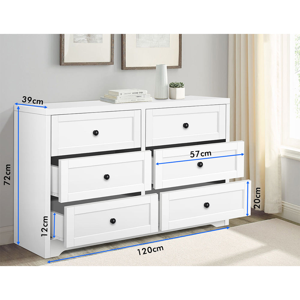 ALFORDSON 6 Chest of Drawers Hamptons Storage Cabinet Dresser Tallboy White