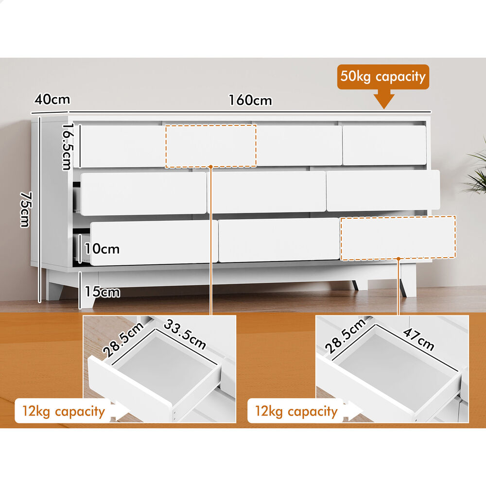 ALFORDSON 10 Chest of Drawers Minimalist Storage Cabinet Dresser Tallboy White