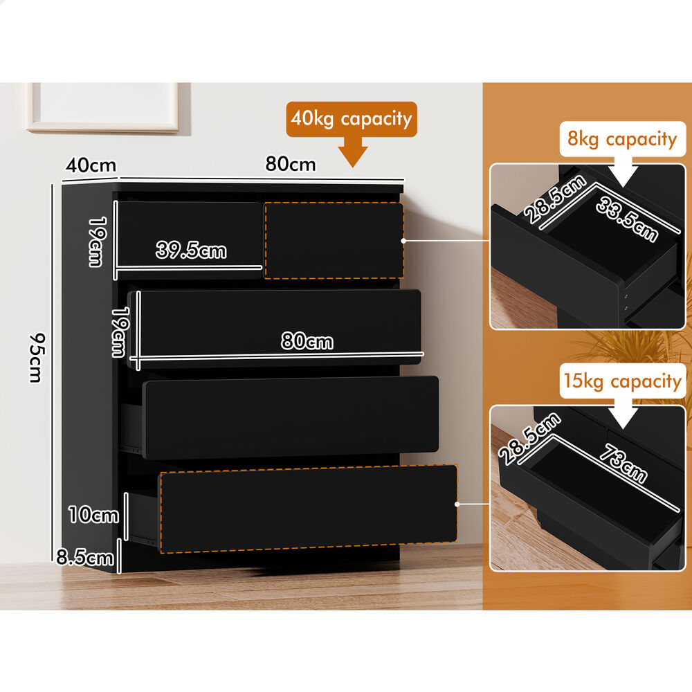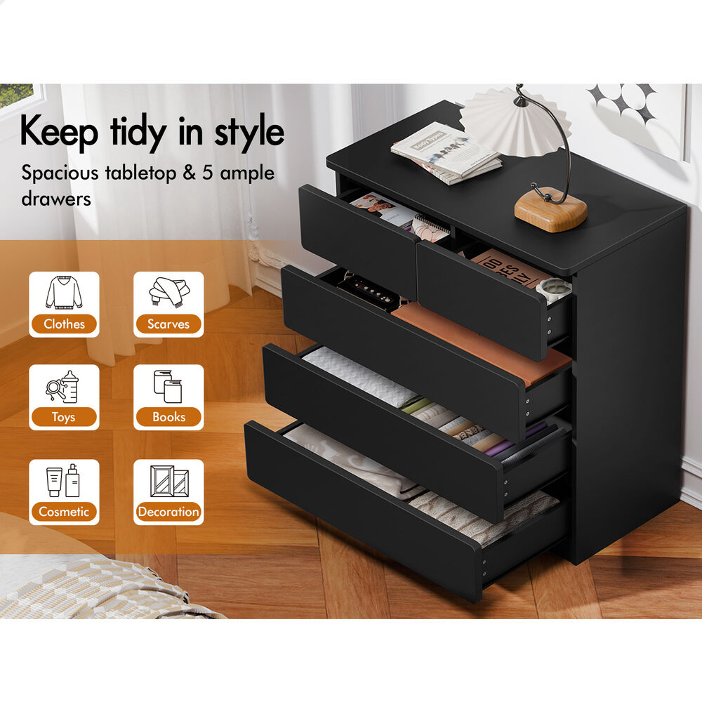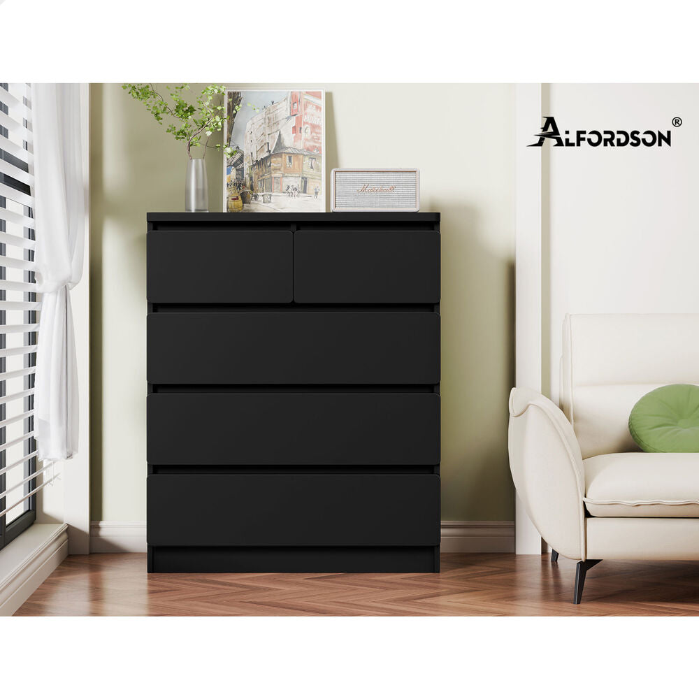 ALFORDSON 5 Chest of Drawers Minimalist Storage Cabinet Dresser Tallboy Black