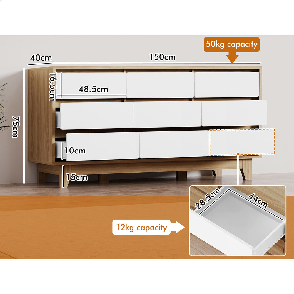 ALFORDSON 9 Chest of Drawers Minimalist Storage Cabinet Dresser Tallboy White