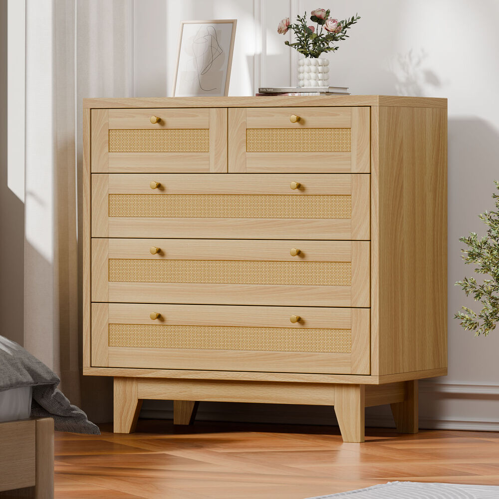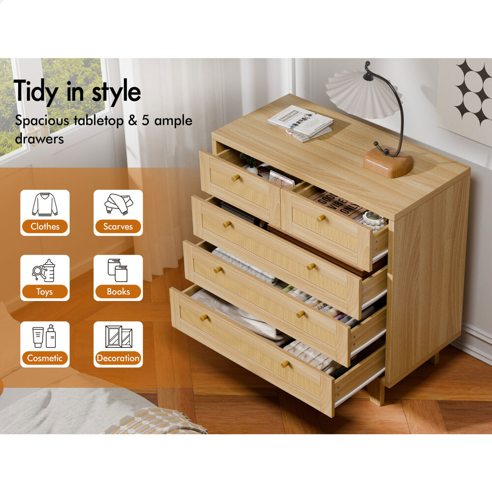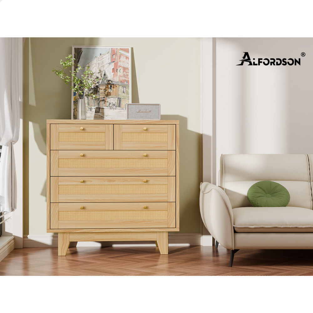 ALFORDSON 5 Chest of Drawers Rattan Storage Cabinet Dresser Tallboy Wood