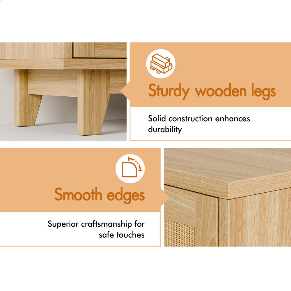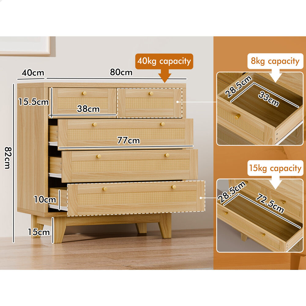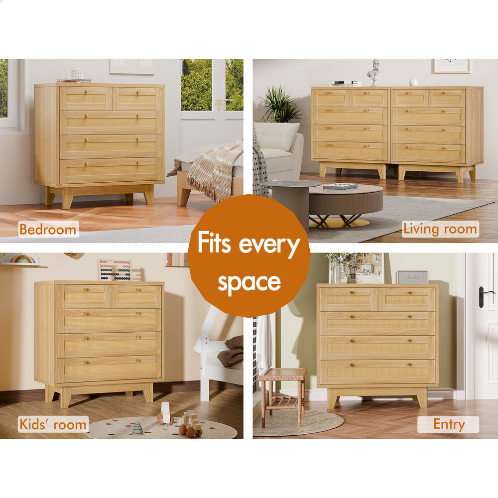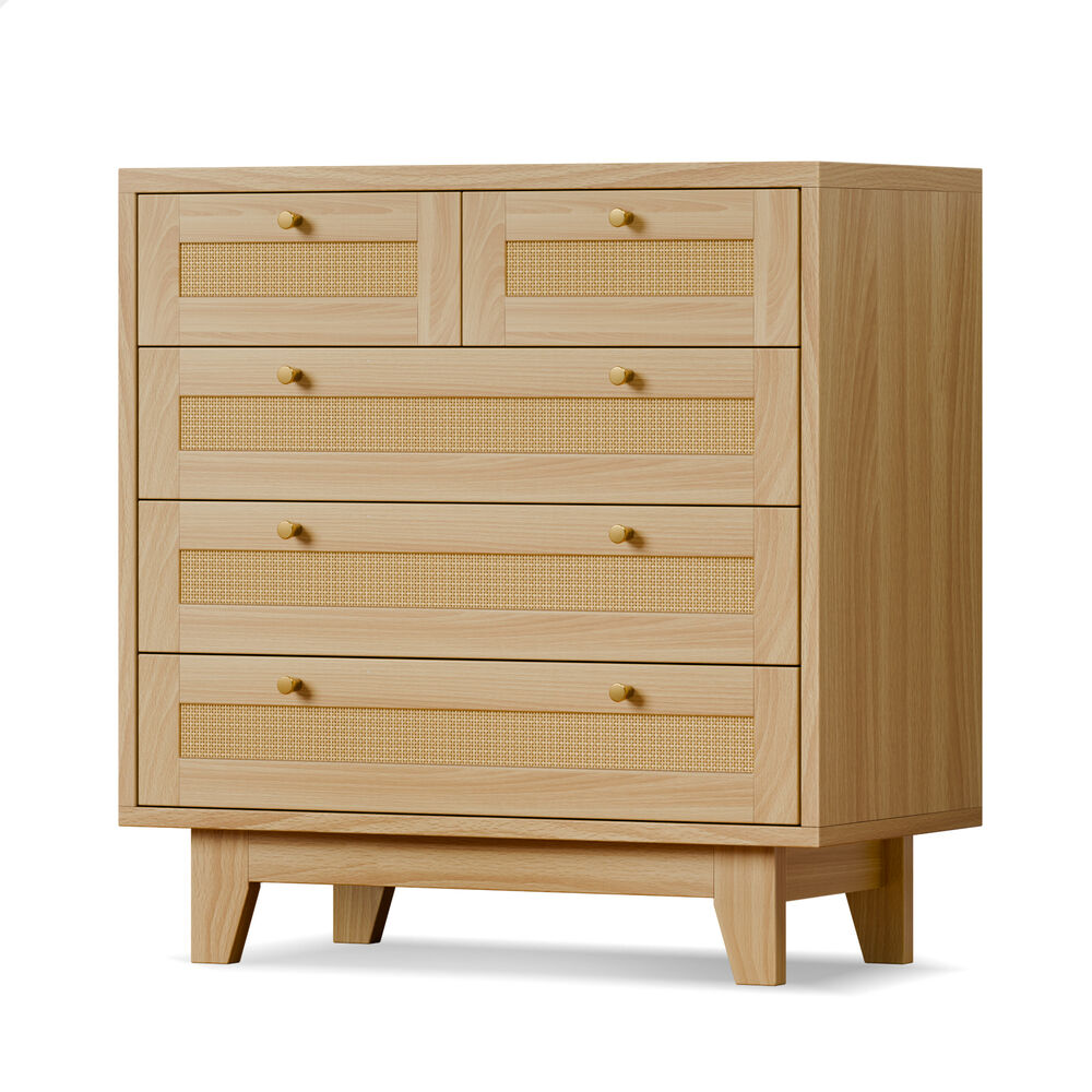 ALFORDSON 5 Chest of Drawers Rattan Storage Cabinet Dresser Tallboy Wood
