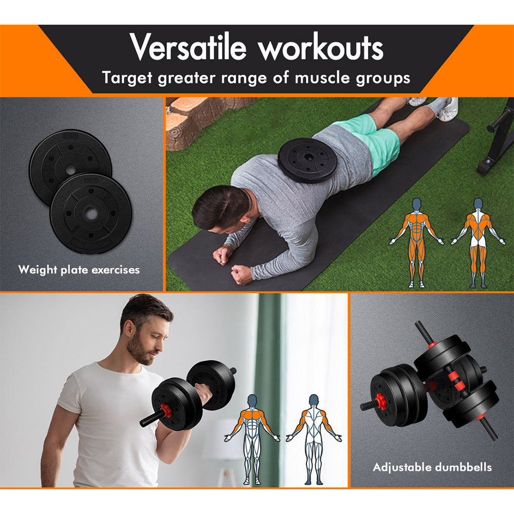 * 8 x 2.5 kg Weight Plates (smooth finish)