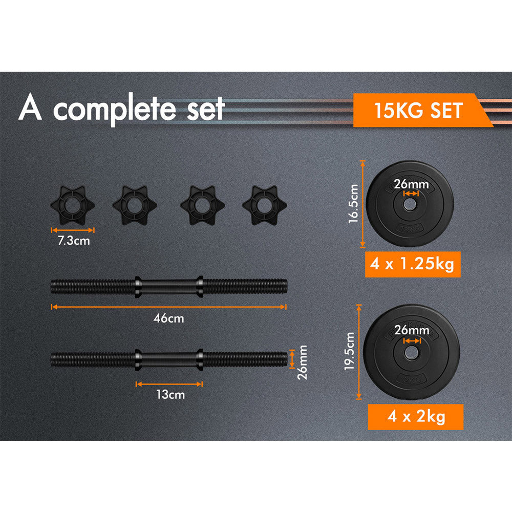 * 15 kg dumbbell set, 7.5 kg for each