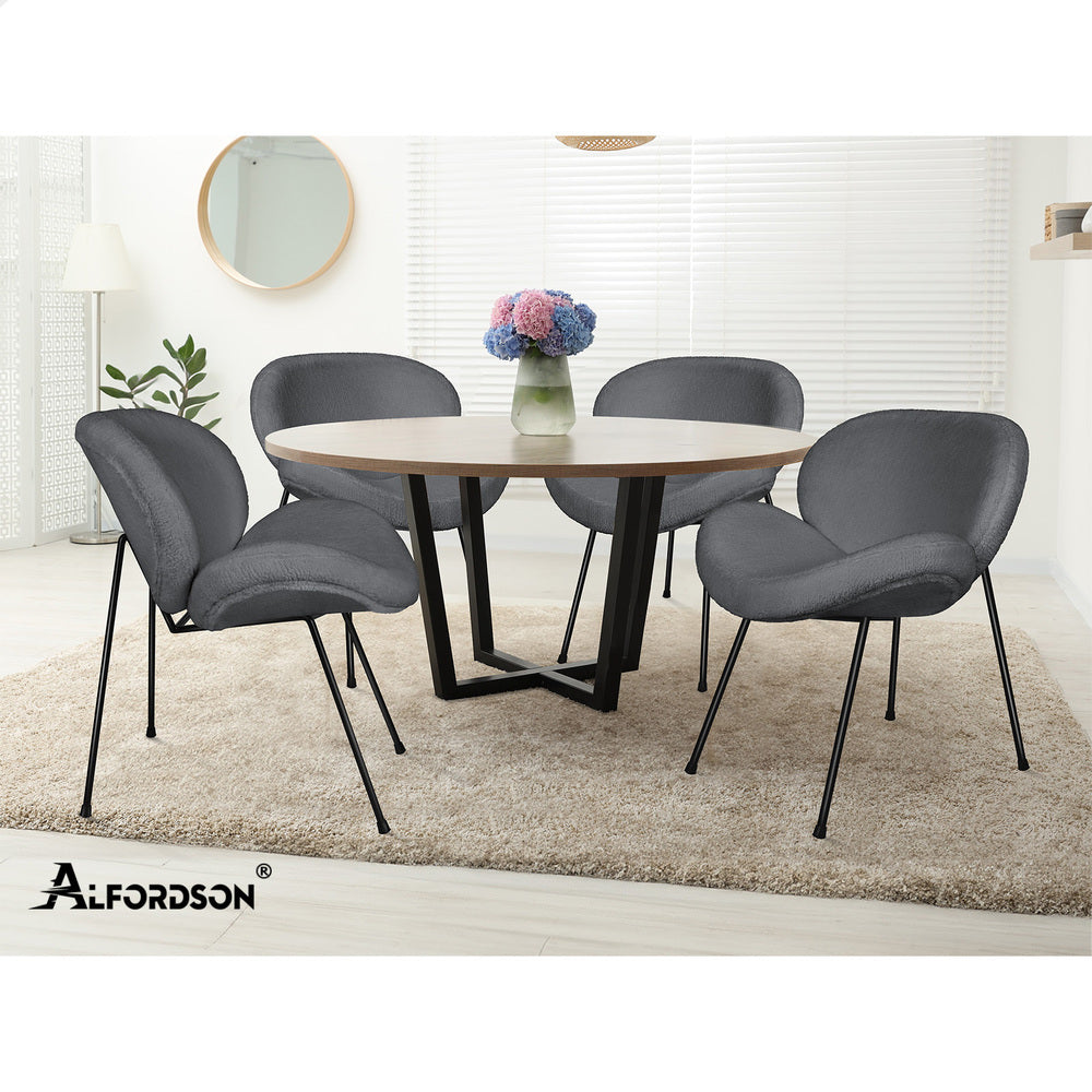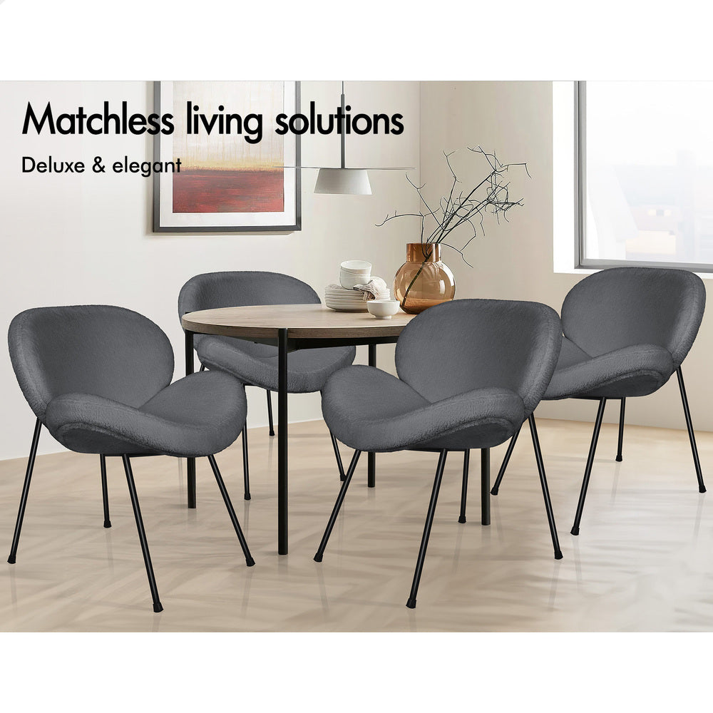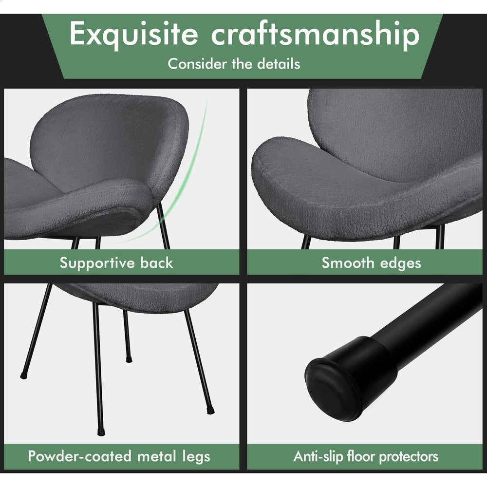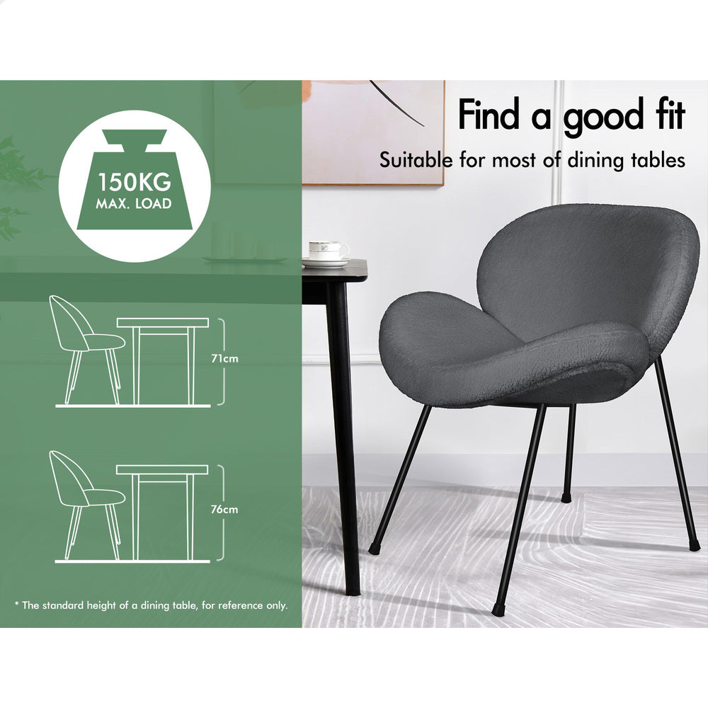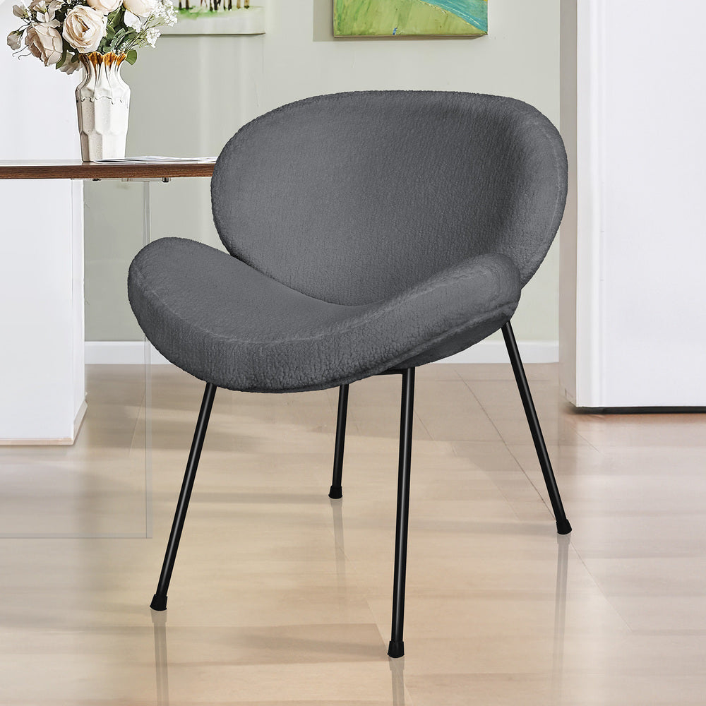 Designed with a blend of comfort and elegance, this accent chair invites you to dine in relaxation. Upholstered in premium sherpa fabric, the seat and backrest are richly padded with high resilient foam. Combining its curved seat and backrest, the kitchen chair offers a delightful seating experience.