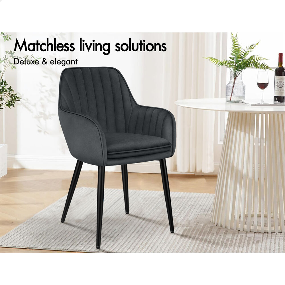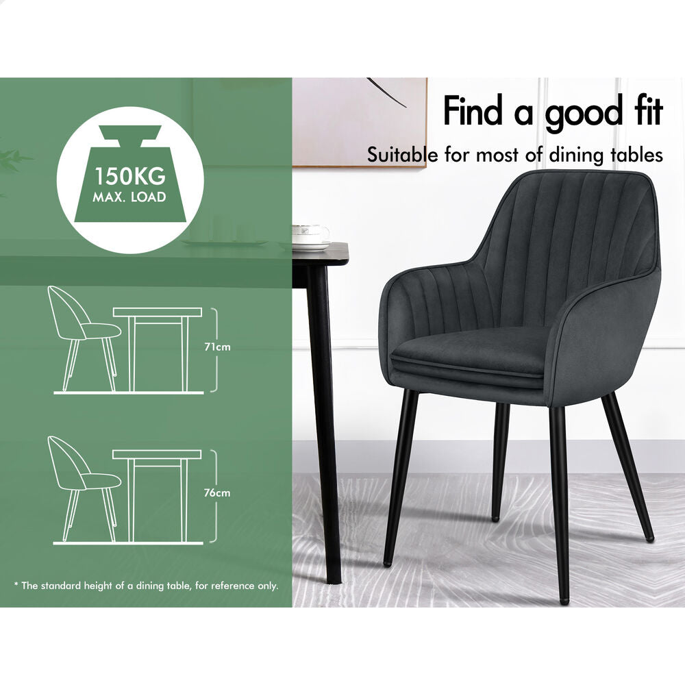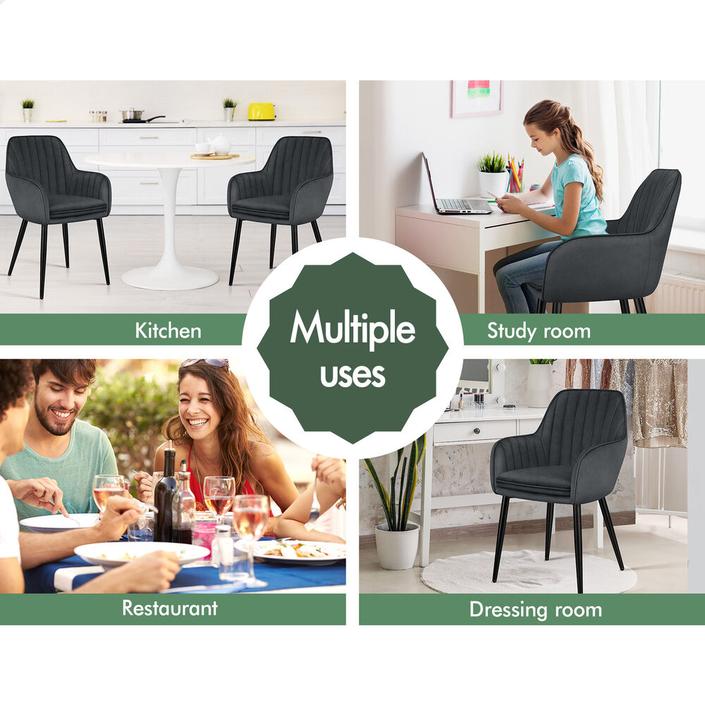 ALFORDSON 4x Dining Chairs Armchair Kitchen Lounge Padded Seat Sofa Velvet Grey