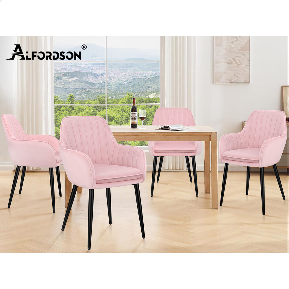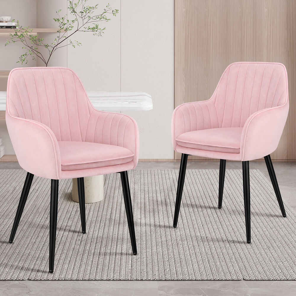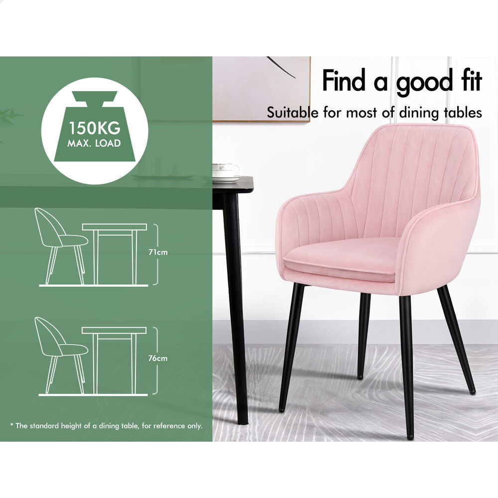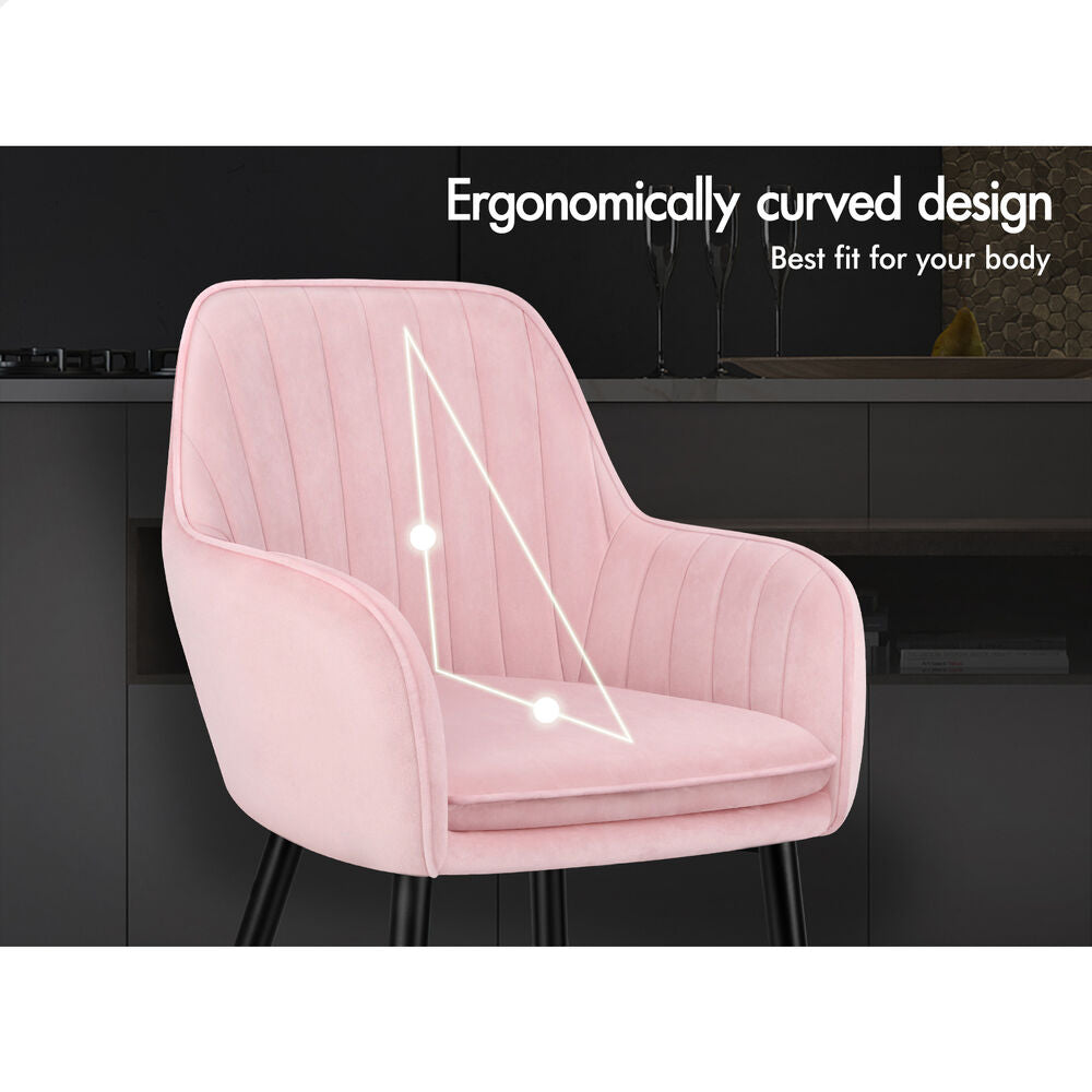 ALFORDSON 2x Dining Chair Armchair Kitchen Cafe Lounge Padded Seat Velvet Pink