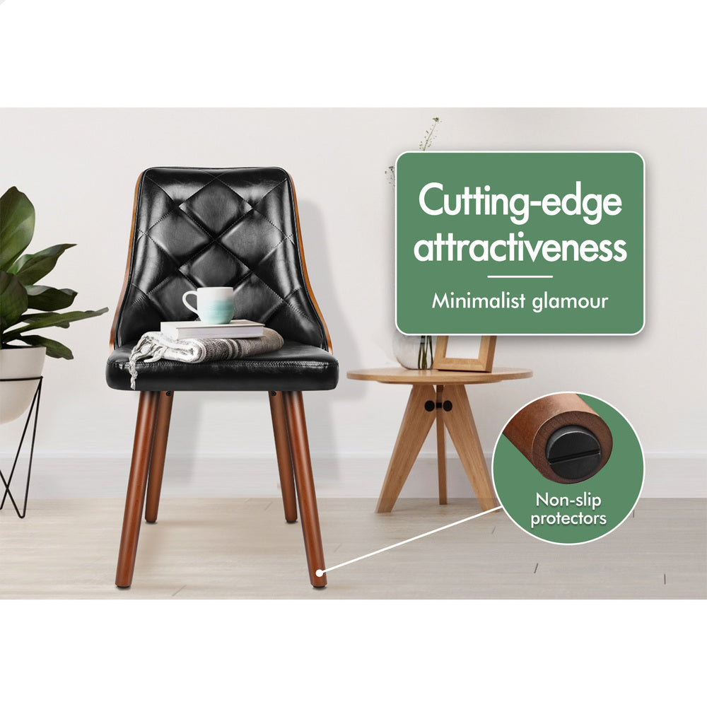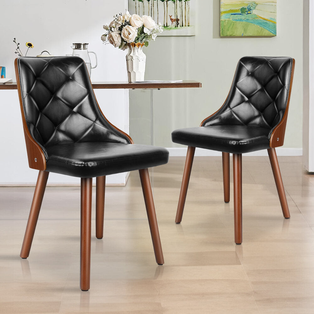 Designed with a blend of comfort and elegance, this accent chair invites you to dine in relaxation. Upholstered in premium glossy PU leather, the seat and backrest are padded with high-resilience foam. Combining its curved backrest, the kitchen chair offers a delightful seating experience.