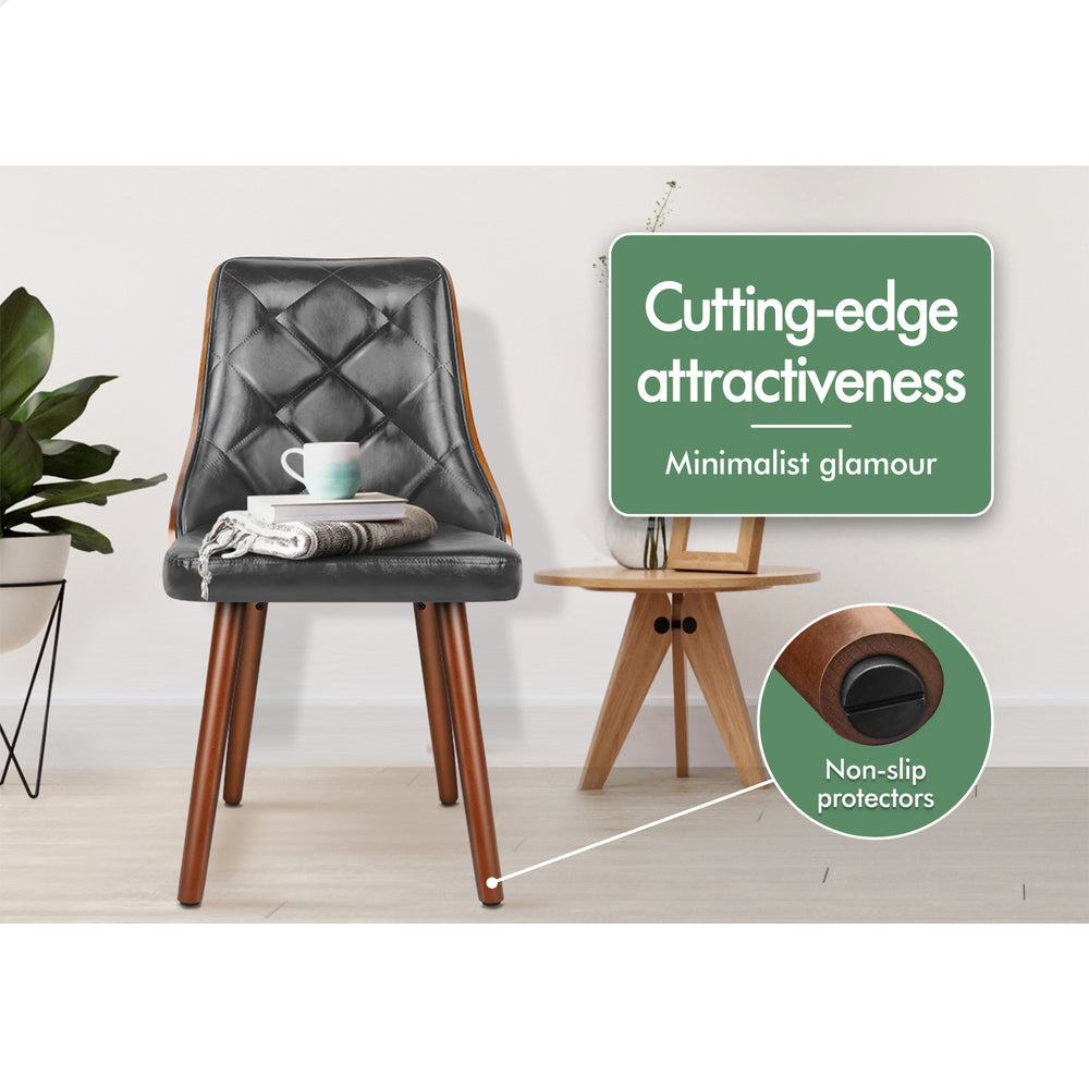 Designed with a blend of comfort and elegance, this accent chair invites you to dine in relaxation. Upholstered in premium glossy PU leather, the seat and backrest are padded with high-resilience foam. Combining its curved backrest, the kitchen chair offers a delightful seating experience.
