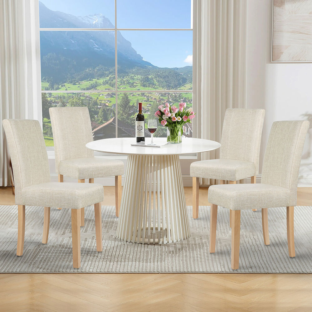 Ultimate comfort - Upholstered in premium linen fabric, the seat and backrest are generously padded with high-density foam, providing exceptional support and comfort. Combined with its ergonomically high back design, our chair offers a delightful seating experience so that you and your guests can enjoy long, leisurely meals without discomfort.