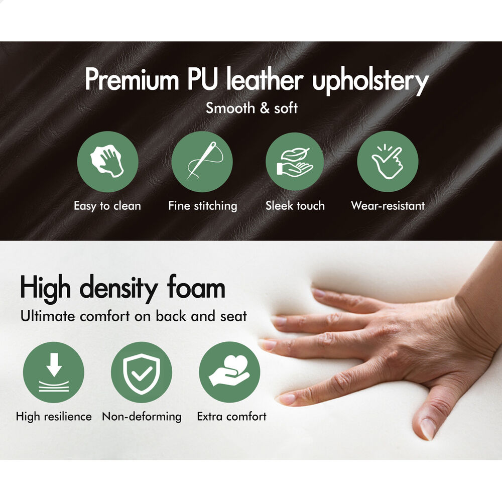 Ultimate comfort - Upholstered in premium glossy faux PU leather, the seat and backrest are generously padded with high-density foam, providing exceptional support and comfort. Combined with its ergonomically high back design, our chair offers a delightful seating experience so that you and your guests can enjoy long, leisurely meals without discomfort.