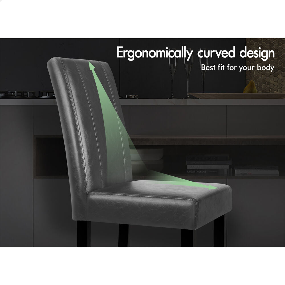 ALFORDSON 2x Dining Chairs Cafe Kitchen Chair High-Back Wooden PU Leather Grey