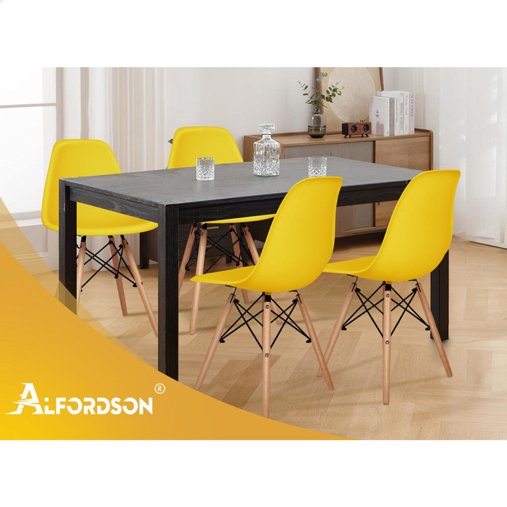 ALFORDSON 4x Dining Chairs Retro Solid Wood Steel Yellow