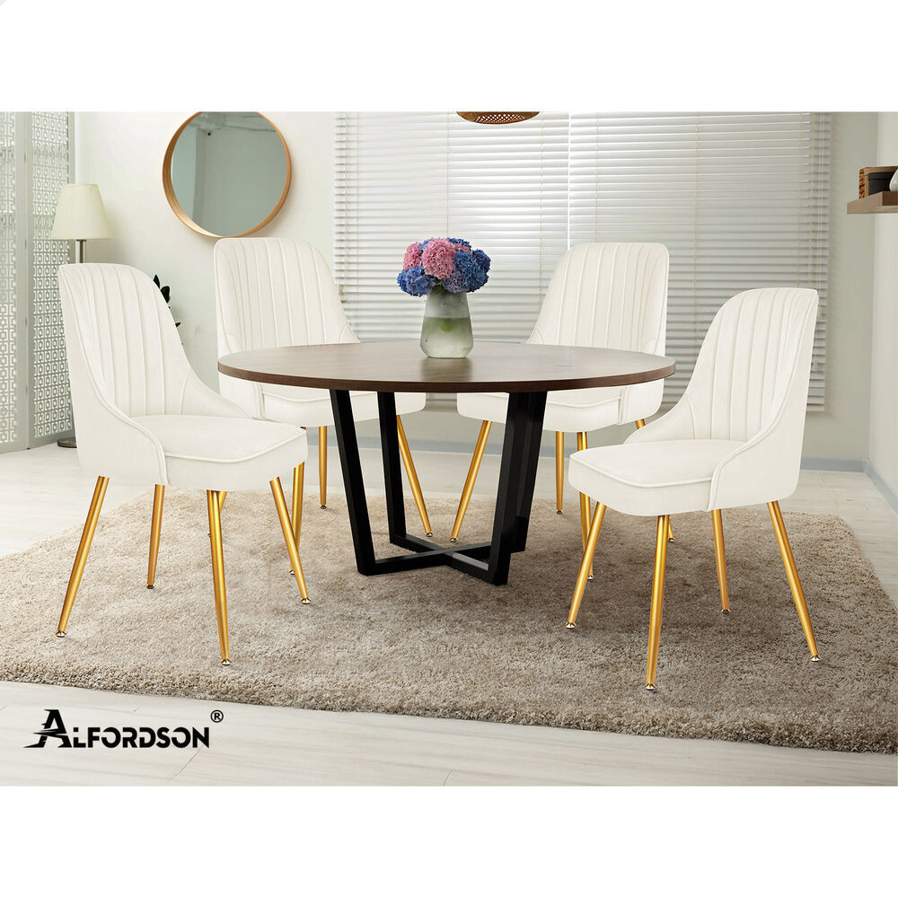 ALFORDSON 2x Dining Chairs Kitchen Accent Lounge Padded Tufted Seat Velvet Beige