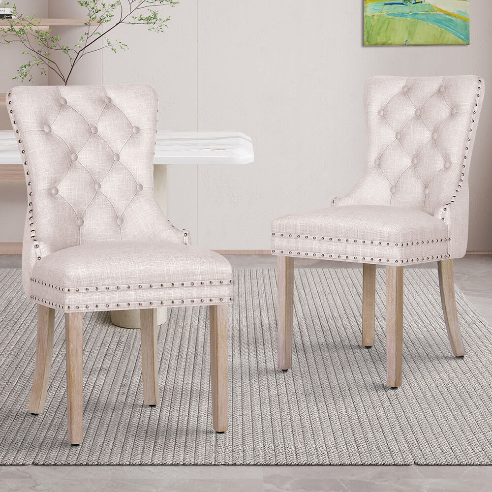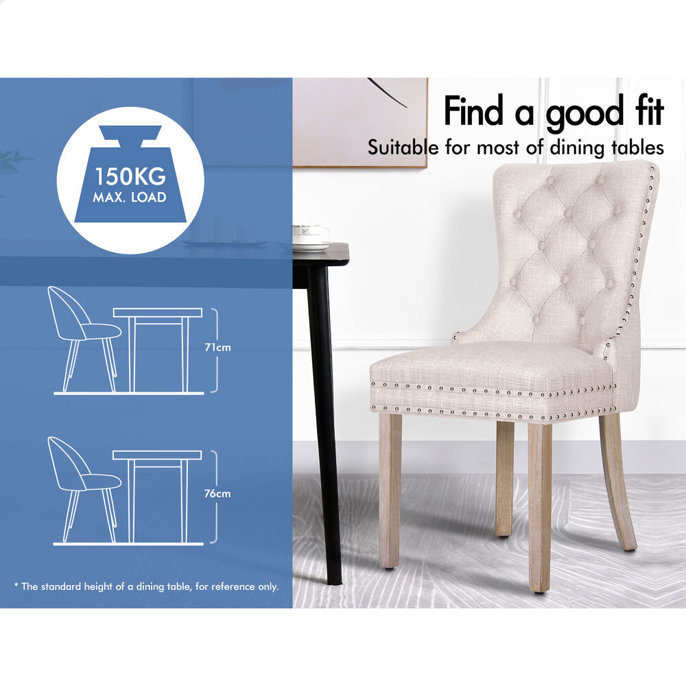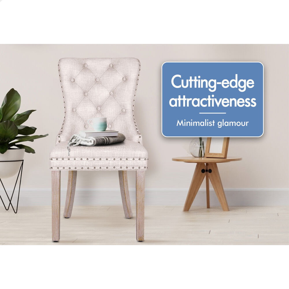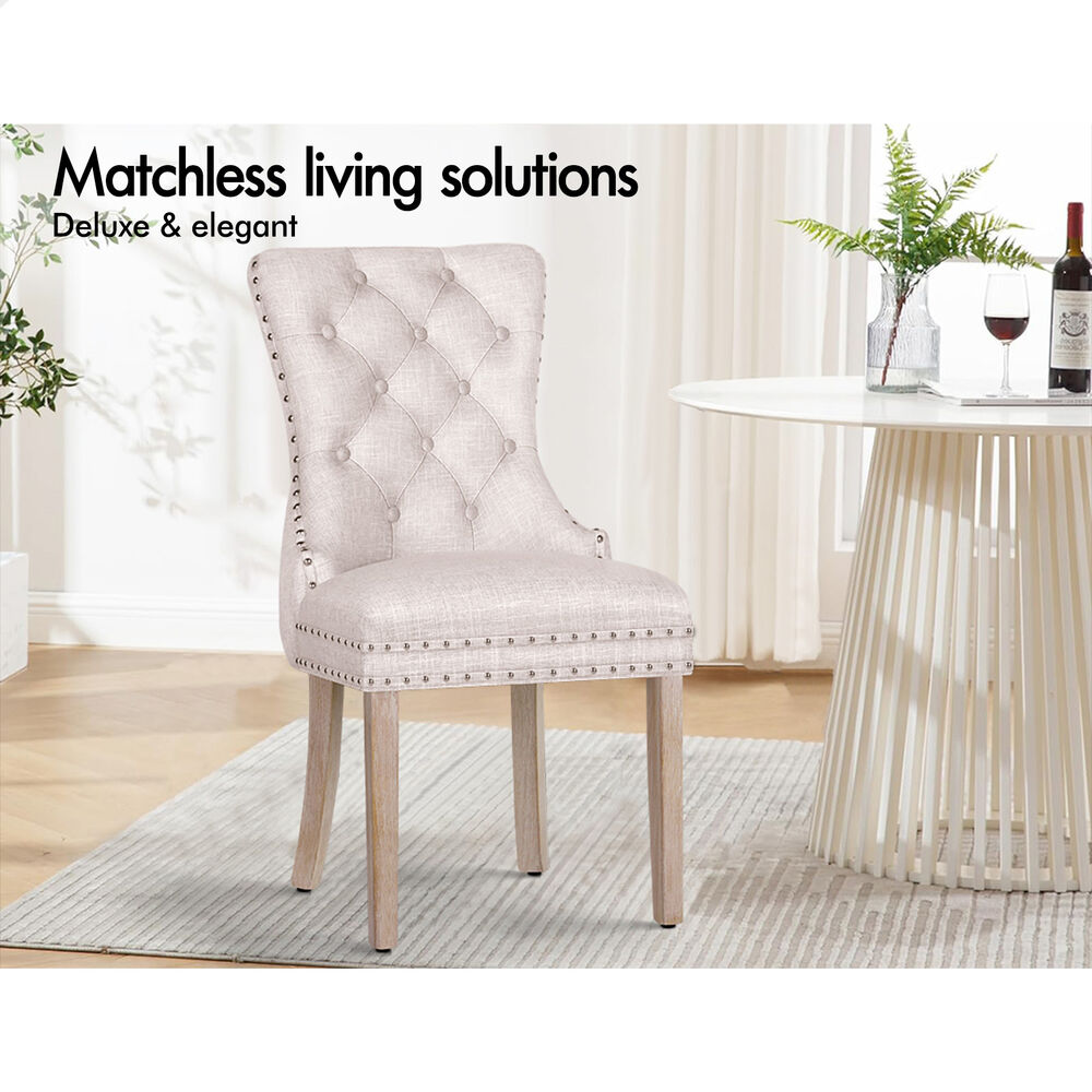 ALFORDSON 2x Dining Chair Kitchen Lounge Retro Button Tufted Wooden Fabric Beige