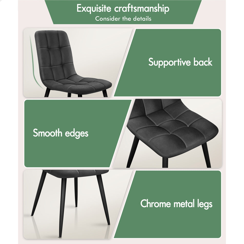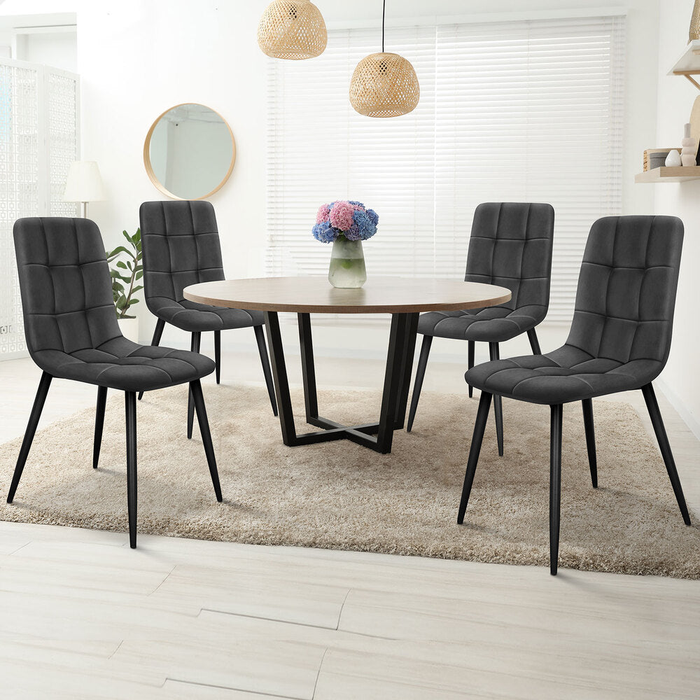 ALFORDSON 4x Dining Chair Elegant Retro Suede Fabric Grey
