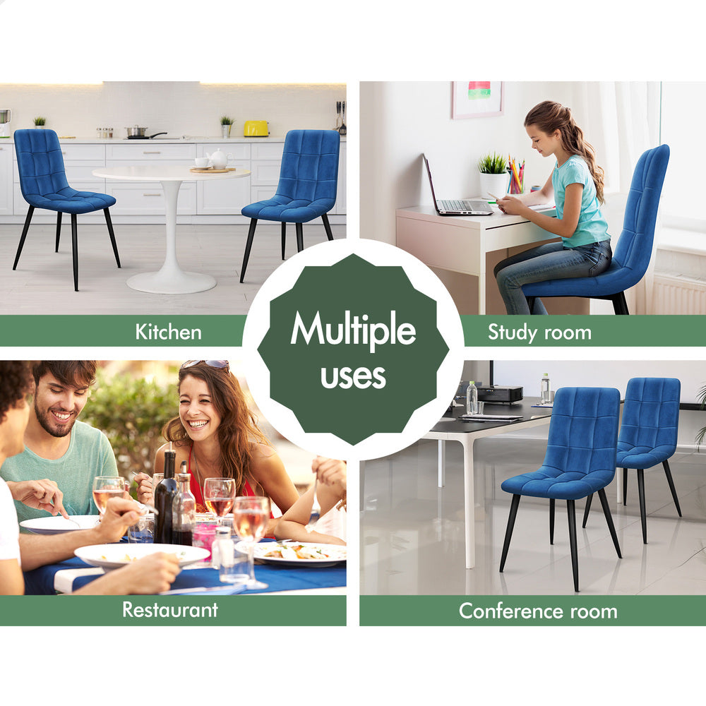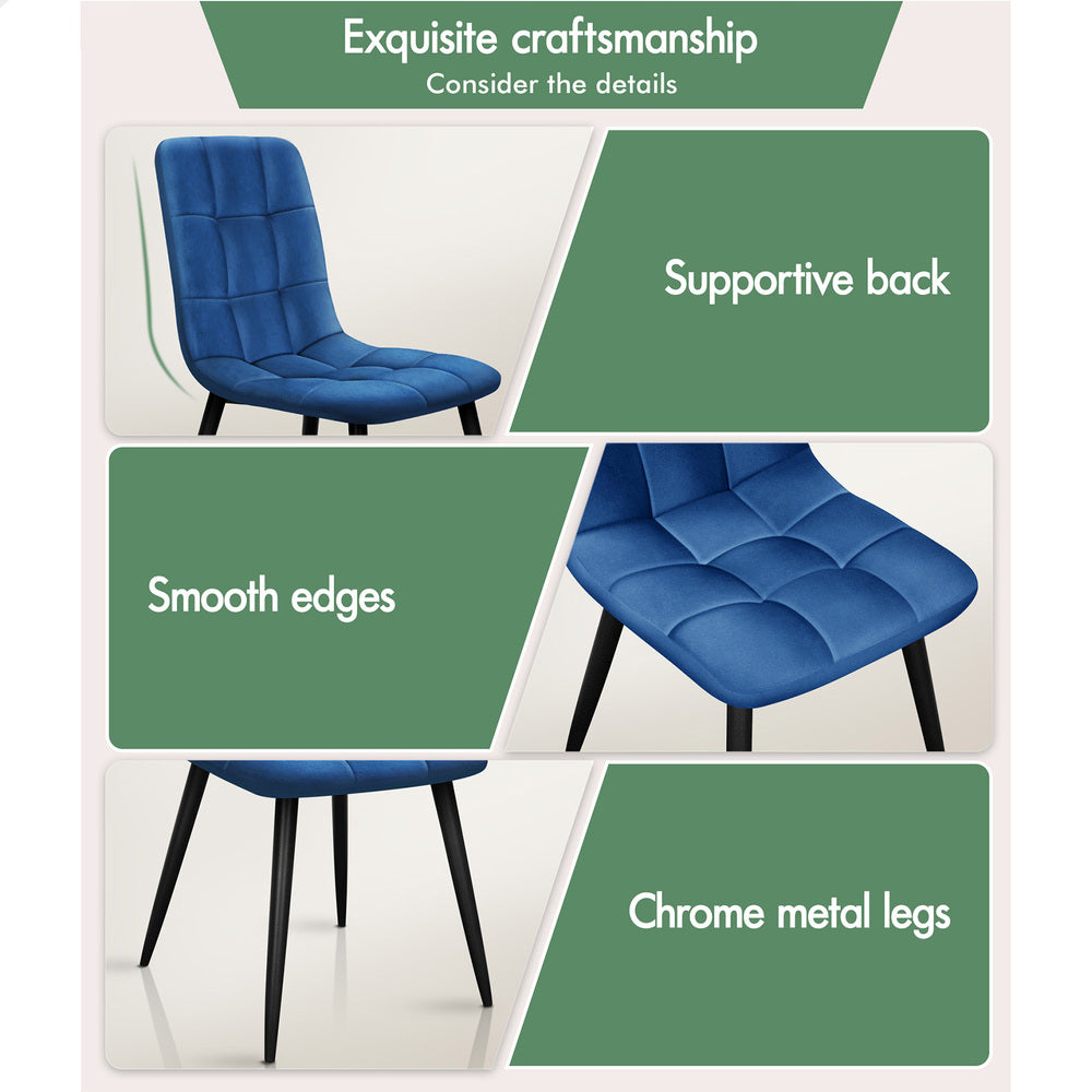 ALFORDSON 4x Dining Chair Elegant Seat Retro Velvet Blue
