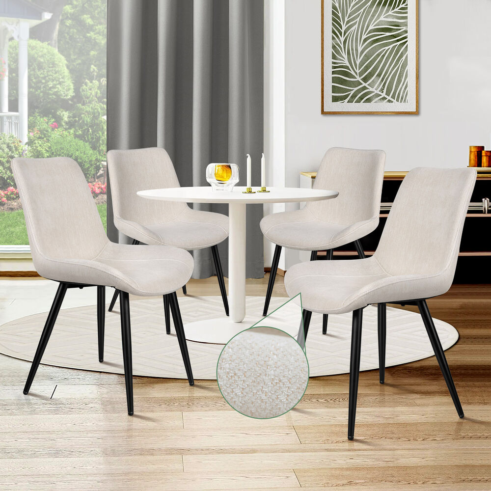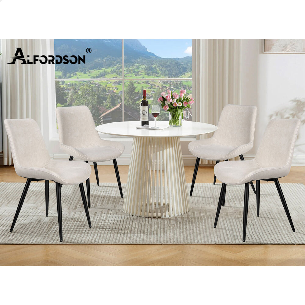 ALFORDSON 4x Dining Chairs Kitchen Accent Cafe Lounge Seat Metal Chenille Beige