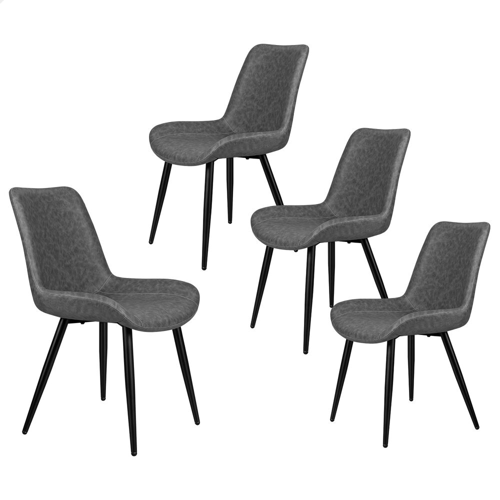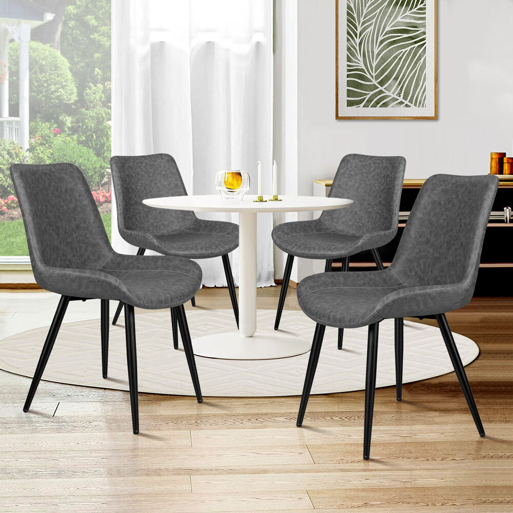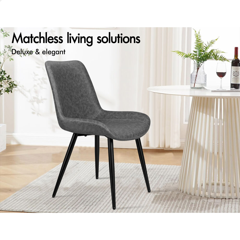 ALFORDSON 4x Dining Chairs Kitchen Accent Lounge Seat Retro PU Faux Leather Grey