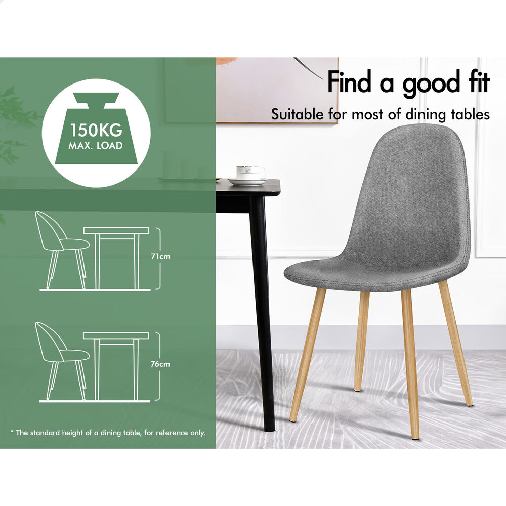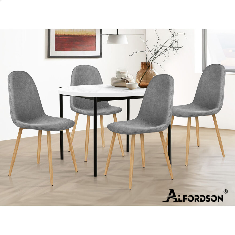 ALFORDSON 4x Dining Chair Kitchen Accent Cafe Lounge Padded Seat Chenille Grey