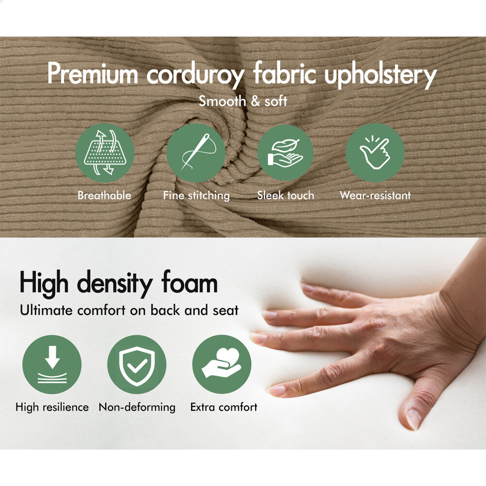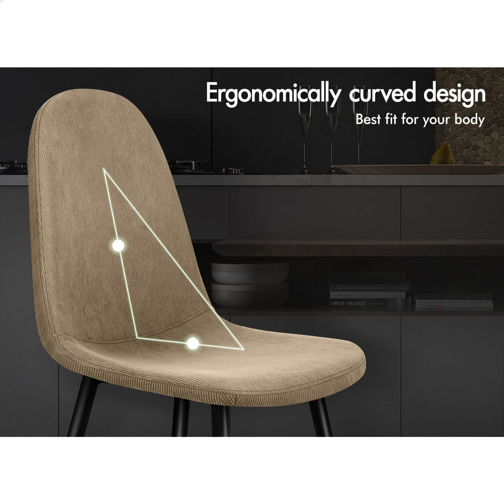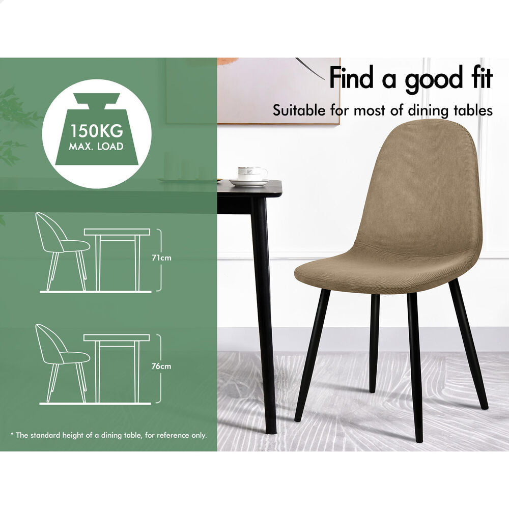 ALFORDSON 4x Dining Chair Kitchen Accent Cafe Lounge Upholstered Corduroy Khaki