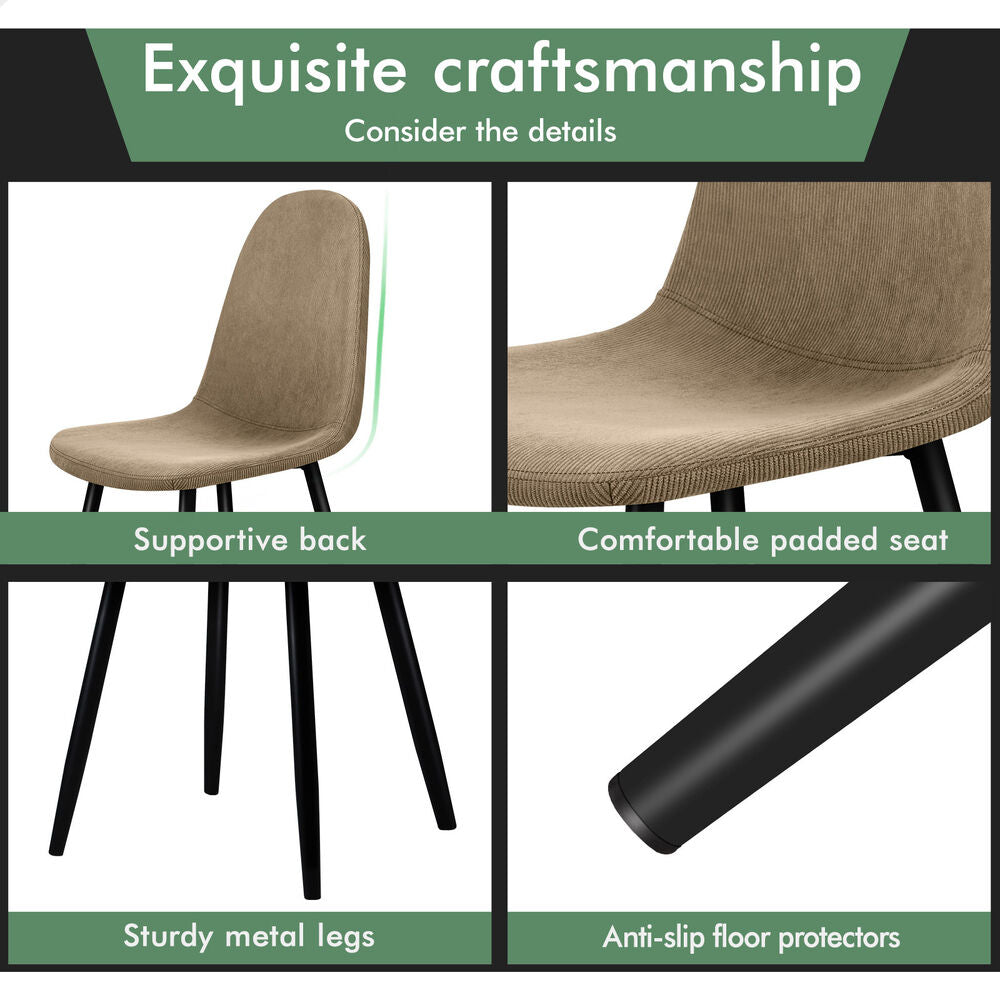 Ultimate comfort - Upholstered in premium corduroy fabric, the seat and backrest are generously padded with high-density foam, providing exceptional support and comfort. Combined with its ergonomic design, our chair offers a delightful seating experience so that you and your guests can enjoy long, leisurely meals without discomfort.
