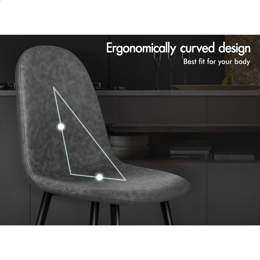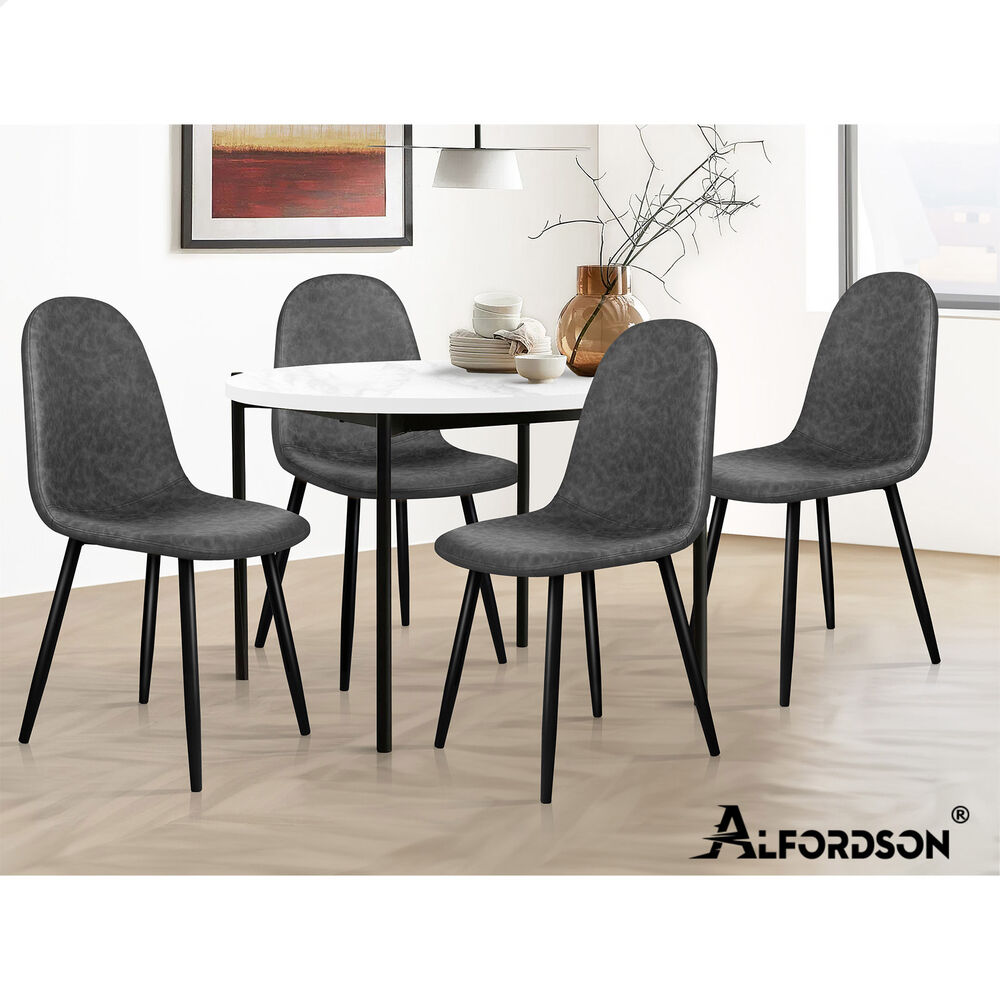ALFORDSON 4x Dining Chairs Kitchen Lounge Cafe Seat Retro PU Faux Leather Grey