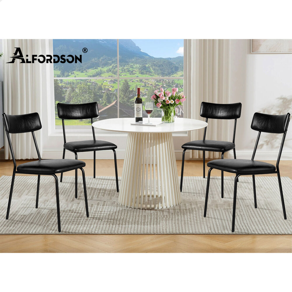 ALFORDSON 4x Dining Chairs Accent Kitchen Lounge Curved Back PU Leather Black