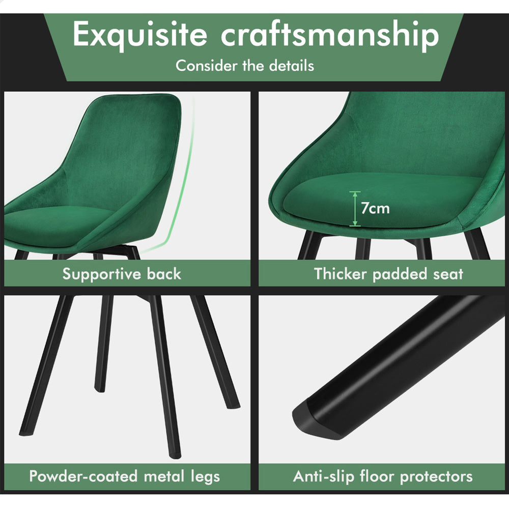 Designed with a blend of comfort and elegance, this accent chair invites you to dine in relaxation. Upholstered in premium velvet fabric, the seat and backrest are padded with high resilient foam. Combining its curved backrest, the kitchen chair offers a delightful seating experience. Together with its heavy duty and swivel mechanism, this chair can be rotated all around for easy facing in any direction, which makes your conversations smoothie.