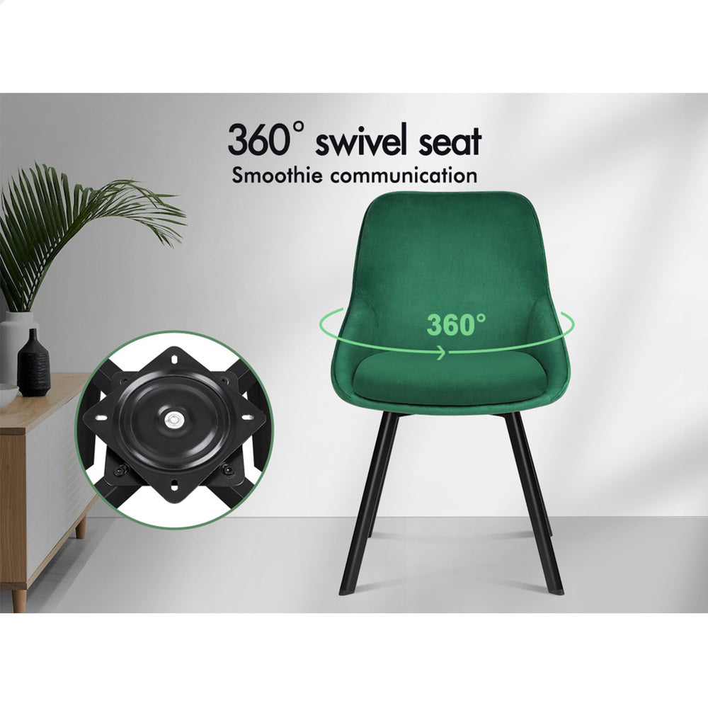 ALFORDSON 2x Dining Chairs Swivel Velvet Green