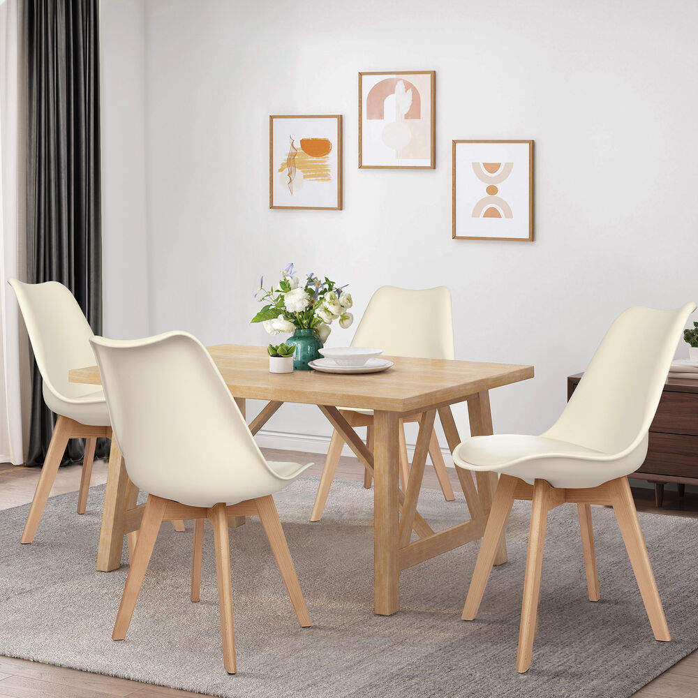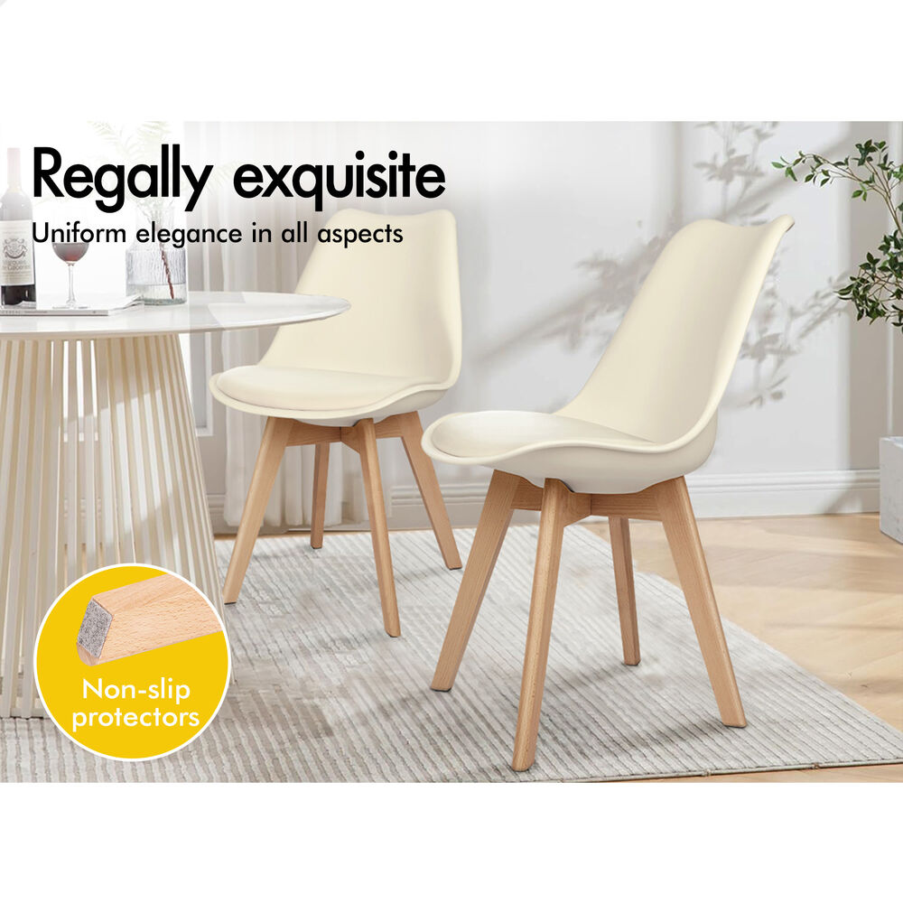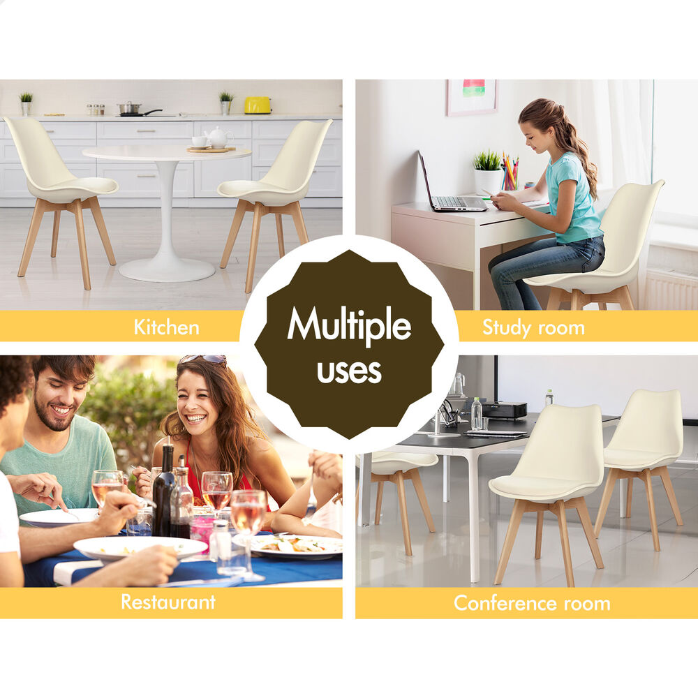 ALFORDSON 4x Dining Chairs Padding Retro PU Leather Kitchen Lounge Wooden Beige